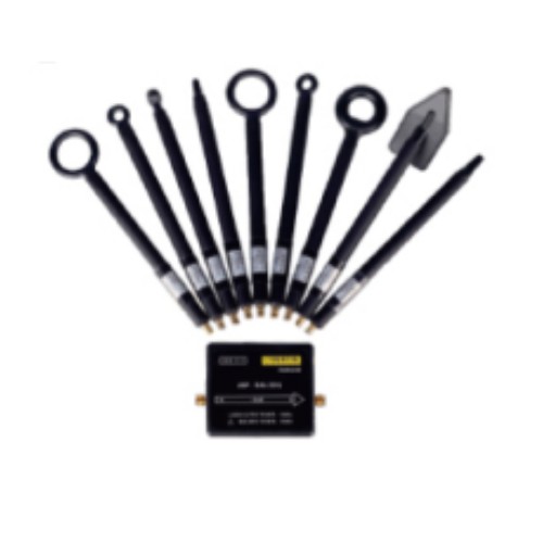 EM5030/EM5030LF系列探头组包含了7个专门用来测试磁场(H)探头,它有效地屏蔽了电场干扰(E),主要用于电磁兼容整改时定位干扰源的近场探头。EM5030的频率范围是30MHz-3GHz,共4种探头形状;EM5030LF的频率范围是9kHz-50MHz,共3种探头形状。 EM5030E系列探头组包含了2个专门用来测试电场(E)的探头,覆盖频率范围为30MHz到3GHz,主要应用于查找电场干扰源,除了探头其他部分均为屏蔽设计。 探头通过50Ω的电缆直接与频谱仪或者示波器连接。当产品的辐射或传导干扰超过标准时,可用近场探头来寻找产品中哪个元件或电路产生了该频率的干扰,能够检测模块之间的耦合通道以及评估系统内信号切换速率、RF电压等。当干扰信号比较弱时,可以配合本公司的EM5020A(20dB增益)或者EM5020B(30dB增益)前置放大器可以提高系统测试灵敏度。