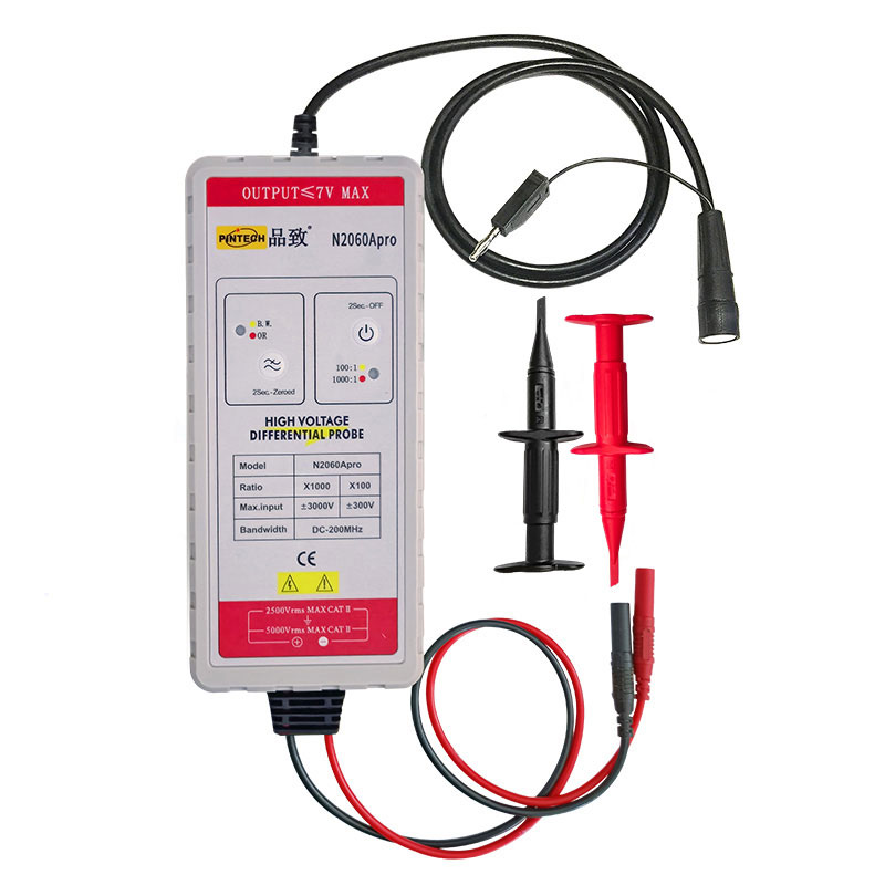 N2060Apro,电压6000Vp-p,为众厂商和各高校指定使用型号,1:1000/100根据不同量程选择测试档位,BNC接口可兼容任何品牌示波器使用。