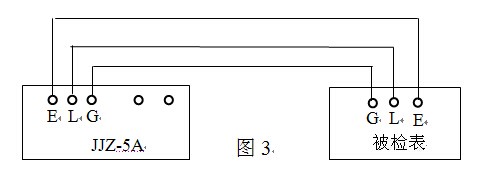 2、检定绝缘电阻表的开路电压峰值电压和短路电流的接线如图3。将本装置的“测量选择”开关置相应位置即可开机测试。