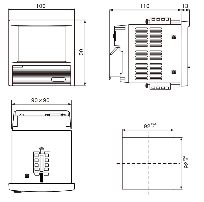 功能特点: 系统 ◆采用大规模集成电路,进口元器件。 ◆高速、高性能32位ARM微处理器,可同时实现4路信号检测、记录、显示和报警。 ◆3.5英寸320x240点阵高亮度图形液晶显示,画面清晰、宽视角。 ◆可输入多种信号,无需跳线,通过软件组态即可。 ◆新型开关电源,100VAC~240VAC范围内正常工作。 ◆集成硬件实时时钟,掉电情况下时钟也能准确运行。 ◆提供变送器24VDC隔离配电。 ◆大容量FLASH闪存芯片存储历史数据,掉电不丢失数据。 ◆2路继电器报警输出。 信号 ◆可输入各种标准信号:标准电流、标准电压、频率、毫伏、热电偶、热电阻。 ◆信号全量程精度±0.2%。 ◆提供标准4-20mA变送输出。 软件 ◆软件密码锁保证用户组态安全。 ◆中文菜单组态,可自由组态并显示工程位号、工程单位。 ◆工程量显示范围:-9999~30000,还支持真空度运算及科学计数法显示。 ◆可以自由设定各通道的上下限报警,记录并显示*近的256条报警信息。 ◆每个通道均支持流量累积功能,提供班报、日报、月报、年报等多种报表形式。 ◆曲线显示模式可选择横向曲线或纵向曲线。 ◆内置GB2312二级汉字字库(6500个汉字)。 ◆功能强大的T6输入法, 操作方便。支持汉字拼音、数字、英文、特殊符号、上下标等字符输入,采用国际标准编码,解决特殊单位及汉字位号的输入问题。 通讯 ◆标准串口通讯接口:RS232C和RS485。 ◆支持标准Modbus-RTU通讯协议,提供多种数据类型,如百分量、工程量、累积量等。除支持本公司的DataManagement数据管理软件外,还支持iFix、组态王、MCGS、力控等通用专业组态软件,无需**驱动。 ◆U盘、SD卡双卡备份,U盘实现数据转存,SD卡实现海量存储。 ◆支持FAT32文件系统,Windows可自动识别备份数据文件,无需格式转换。 ◆外接微型打印机,可手动打印数据、曲线,定时自动打印实时数据,满足用户现场打印的需求。 仪表尺寸: