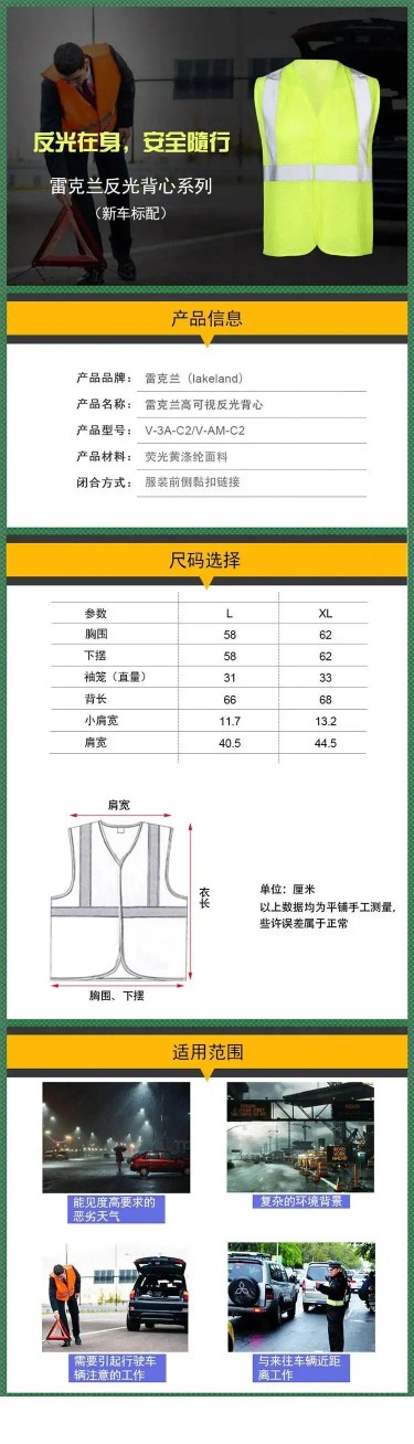 产品名称:雷克兰 V-3A-C2 高可视 反光服系列