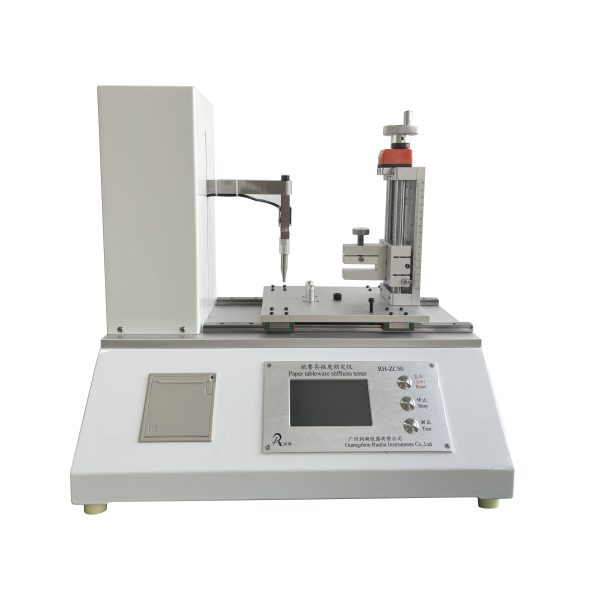 RH-ZC50纸餐具挺度测定仪,用于测量纸餐盘整体挺度和纸刀 (叉、勺)的弯曲性能检测。该仪器具有两种测试方法,全自动完成测试,测试数据精准稳定,重复性好。 符合标准:GB/T 27591—2025 纸餐具 测试方法一:纸刀 (叉、勺) 试验步骤:测量纸刀 (叉、勺) 试样总长度 Lk(Lf 或 Ls),依据试样总长度,按表 2 选取相应的受力点下降距离 H1。将纸刀(叉、勺)的手柄固定在抗弯曲性能检测仪上,夹持长度为 50 mm± 2 mm,纸叉和纸勺试样正面朝上,示意图见图 2。在距离试样使用端 20 mm 的位置,下压头向试样施加压力。下压头以 25 mm/min±2 mm/min 的速度在垂直方向上移动一定距离 H1,记录受力测量装置下压过程中所受力 F 的最大值,单位以牛顿(N)表示。以 5 次测定的算术平均值表示结果,并修约至小数点后第 2 位。 测试方法二: (纸餐盘) 在规定的试验条件下,夹持纸餐盘的一端边缘,调节支撑点高度使纸餐盘处于水平状态,在另一端向纸餐盘施加垂直方向一定速度(25 mm/min±2 mm/min)的力,下压头下降至一定位置时,记录下压过程中受力测量装置受的最大力值。 技术参数: 测量范围 (0.5-100)N 力值误差 ±0.5%fs 力值分辨率 0.001 N 夹持长度 50mm 测试距离 10-150mm(可调) 下降距离 5-30mm(可调) 测试速度 1-80mm/min 可调 (标准25 mm/min) 连接电脑(可选) RS232 USB接口 电脑软件(可选) 配电脑软件读取数据 电源 AC 220V±22V, 50Hz 质量约20 kg 产品特点: 1、精度高 采用高精度测力传感器,确保测试准确度误差在±0.5%内。 2、重复性好 采用伺服电机控制,测头行进过程精准、稳定,测定结果重复性好。 3、使用方便,易于操作 彩色触摸屏,友好人机界面操作。全自动完成测试,具有测试数据统计处理功能,微型打印机输出,也可连接电脑(可选)。连接电脑时,除了可自动记忆储存结果外,还可以显示曲线并保存。 4、便于计量、校准 仪器内置校准程序,便于计量、校准部门(第三方)对该仪器进行校准。 |