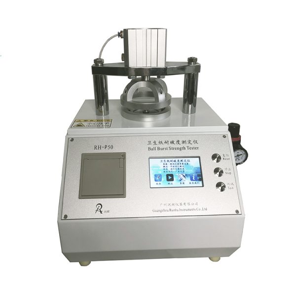 产品介绍: RH-P50卫生纸耐破度测定仪是测试卫生纸破裂强度的基本仪器,用于测试各种擦手纸、卫生纸、纸手帕等耐破强度; 原理:利用球型测试头刺破样品的原理,分析干、湿样品的耐破强度。 应用于卫生纸厂家、商检、科研等部门。 执行标准: IGB/T 24328.7-2009卫生纸及其制品球型耐破度测试 ISO12625-9-2005卫生纸耐破度的测定 GB/T 20810-2018 卫生纸(含卫生原纸)球型耐破度 技术参数: 测量范围:(0~50)N 分辨力:0.001N 球形测量头直径:Φ16 mm 上下压环直径:Φ50±0.2 mm 测试速度(标准):(125±5)mm/min 电源:AC110-240V, 50Hz 外形尺寸:330×350×390 mm 质量:约20kg 人机界面:触摸屏中英文显示 空气压缩机:用户自配 连接电脑:可选 产品特点: ◆精度高 采用高精度测力传感器,确保测试准确度误差在±1%内。 ◆重复性好 采用步进电机控制,测头行进过程精准、稳定,测定结果重复性好。 ◆使用方便、易于操作 触摸屏中文显示,友好人机界面操作。采用自动夹紧装置,全自动完成测试,具有测试数据统计处理功能,微型打印机输出,也可连接电脑操作。连接电脑时,除了可自动记忆储存结果外,还可以显示耐破曲线并保存。 ◆便于计量、校准 仪器附配专门校准砝码,内置校准程序,便于计量、校准部门(第三方)对该仪器进行校准。 |