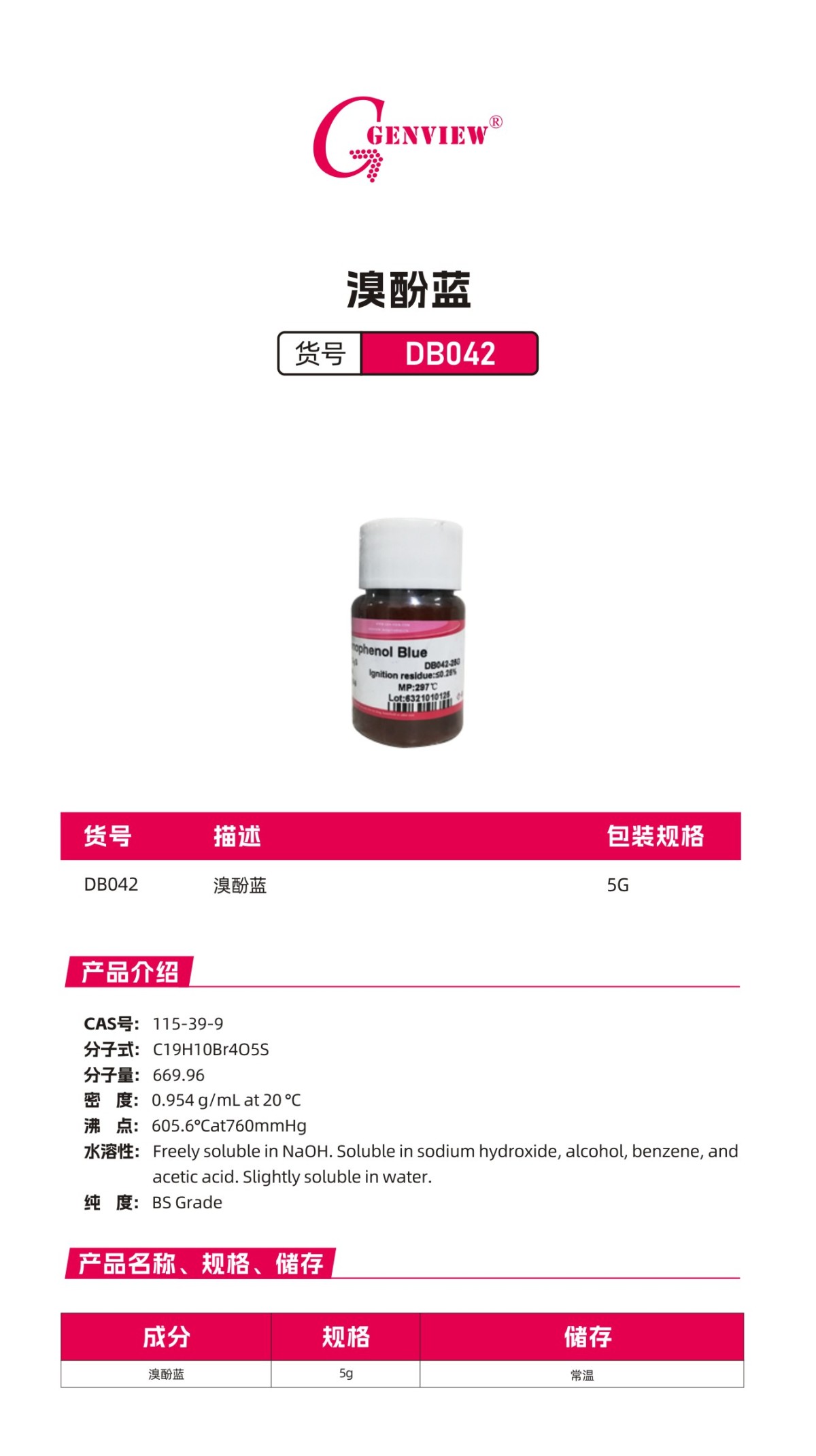 我对您的DB042-5G Bromophenol Blue溴酚兰产品感兴趣,请发具体的信息及报价,谢谢!