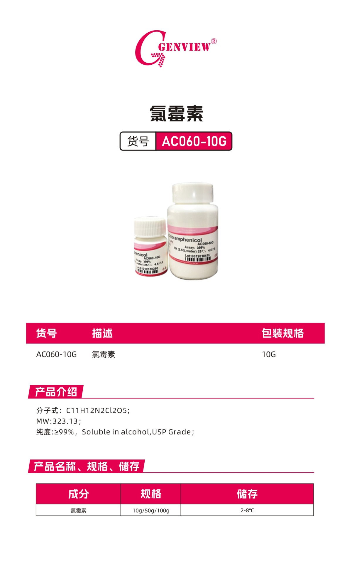 我对您的AC060-10G Chloramphenicol氯霉素产品感兴趣,请发具体的信息及报价,谢谢!