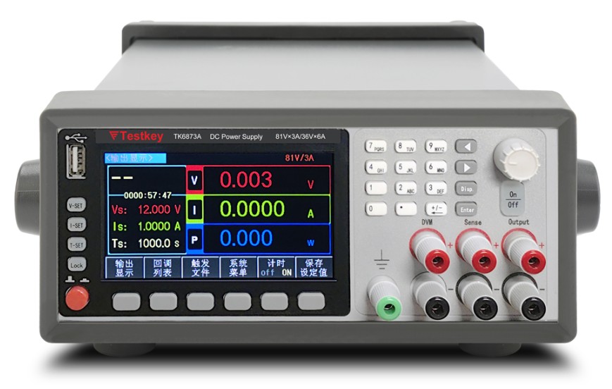 | 型号 | 显示 | 电压 | 电流 | 功率 | 最小分辨率 | 标配接口 | | TK6861A | 4.3寸真彩液晶屏 | 0~22V/0~9V | 0~5A/0~10A | 110W/90W | 1mV/0.1mA | RS232/485,USB HOST,USB Device | | TK6862A | 4.3寸真彩液晶屏 | 0~36V/0~20V | 0~3A/0~6A | 108W/120W | 1mV/0.1mA | RS232/485,USB HOST,USB Device | | TK6863A | 4.3寸真彩液晶屏 | 0~80V/0~36V | 0~1.5A/0~3A | 120W/108W | 1mV/0.1mA | RS232/485,USB HOST,USB Device | | TK6872A | 4.3寸真彩液晶屏 | 0~36V/0~15V | 0~6A/0~12A | 216W/108W | 1mV/0.1mA | RS232/485,USB HOST,USB Device | | TK6873A | 4.3寸真彩液晶屏 | 0~81V/0~36V | 0~3A/0~6A | 243W/216W | 1mV/0.1mA | RS232/485,USB HOST,USB Device | | TK6874A | 4.3寸真彩液晶屏 | 0~152V/0~80V | 0~1.5A/0~2A | 228W/160W | 1mV/0.1mA | RS232/485,USB HOST,USB Device |