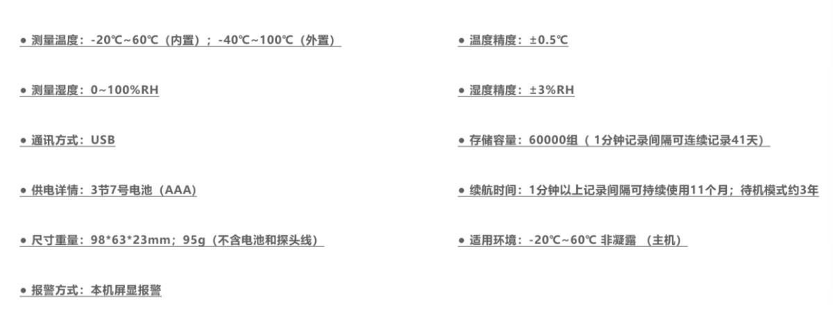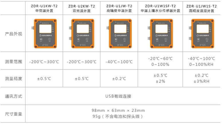 USB接口温湿度数据记录仪是一款常用的环境监测设备,适用于农业研究、食品、医药、化工、气象、环保、电子、实验室等领域。通常用于记录环境中的温度、湿度及多项气候参数数据。采用内置或外接各种传感器,将采样数据保存在记录仪存储器内,通过USB接口,可以方便地将数据传输到计算机或其他设备上进行分析和处理。能够帮助人们更好地了解和控制环境中的温湿度变化,保障各种应用场景的安全和质量。技术参数:型号对比: