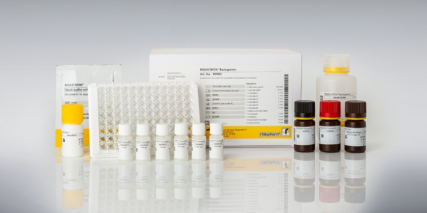 产品信息 RIDASCREEN® 莱克多巴明是一种竞争性酶免疫测定法,用于定量分析尿液、肉类和肝脏中的莱克多巴胺,以及用于尿液中莱克多巴明葡萄糖醛酸苷的定性分析。 莱克多巴胺属于β激动剂组。众所周知,β激动剂适合用作畜牧生产领域的性能改进剂。特别是,莱克多巴胺可降低脂肪,增加平均日增重,并提高育肥动物的饲料转化率 (FCR)。然而,β激动剂尚未被欧盟 (EU) 授权用作畜牧生长促进剂。 除了脂肪分解和合成代谢作用外,莱克多巴胺还对非横纹肌组织具有放松作用,其作为抗哮喘剂的治疗用途正是基于此。莱克多巴胺残留物在非法使用后可能会给消费者带来风险。因此,大多数国家/地区已禁止使用莱克多巴胺。
