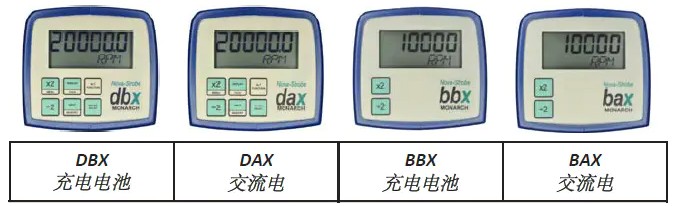 | 型号 | DBX充电电池 | DAX交流电 | BBX充电电池 | BAX交流电 | | 闪动频率: | 30‐20000 FPM | 30‐10000 FPM | | 显示: | 六位数字或五位字母LCD液晶显示 | | 精度/分辨率: | 0.002% 读数 or ± 1 / 0.01 FPM | | 闪能/持续时间: | 230 毫焦 / 8‐20微妙 | | 平均功率: | >13W (3450 FPM以上) | | 灯管寿命: | 氙灯管,可闪1亿次以上 | 输入输出功能: (3.5mm耳机接口) | TTL (*大24Vdc) Input. 提供3.3Vdc TTL 输出 | 无 | | 转速模式: | 5‐250,000 RPM ‐使用外置转速传感器 | 无 | | 转速存储: | 9个频闪数值 | 无 | | 内部模式相位移动: | 有 | 无 | | 持续时间: | 2 小时(1800 FPM 时) | 连续 | 2 小时(1800 FPM 时) | 连续 | | 电源: | 内置镍氢充电电池 | 115 Vac, 50‐400Hz 230 Vac, 50‐400Hz | 内置镍氢充电电池 | 115 Vac, 50‐400Hz 230 Vac, 50‐400Hz | | 重量: | 0.86 kg | 0.68 kg | 0.86 kg | 0.68 kg | | 尺寸(长 x 宽 x 高): | 机身: 229 x 93 x 90mm; 前端直径: 122mm; 手柄长度: 108mm) |