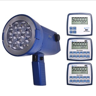 Nova-Strobe 频闪仪,LED闪光测速仪坚固耐用,由电池供电,用于观测高速转动或运动物体和转速测量。由12个LED灯管提供了极其明亮均匀的闪光光源,相比传统氙灯灯管有着更长的使用寿命,可以连续低温运行,频闪范围达到30-500000FPM,几乎覆盖了所有的应用环境。BBL型是*基本的LED频闪仪,DBL添加了相位延迟功能,可预设5个频闪数值,可外接转速传感器测量转速,TTL输入输出功能,可多台DBL 连接,由一台触发所有DBL同时工作。PBL具有DBL所有功能,加入了外部触发相位延迟(角度、时间)和虚拟转速(慢速运动),PBL可由电池或交流电供电。 Nova‐Strobe频闪仪特点 • *明亮的便携式LED光源频闪仪 • 故障诊断及转速测量 • 带背光LCD显示屛(DBL、PBL) • 带有三脚架安装接口方便固定(手柄底部) • CE 和 RoHS 认证 • NIST标准出厂检测报告(DBL、PBL) • 简洁、美观的便携式设计 • 12键键盘输入快速、直观(DBL、PBL)