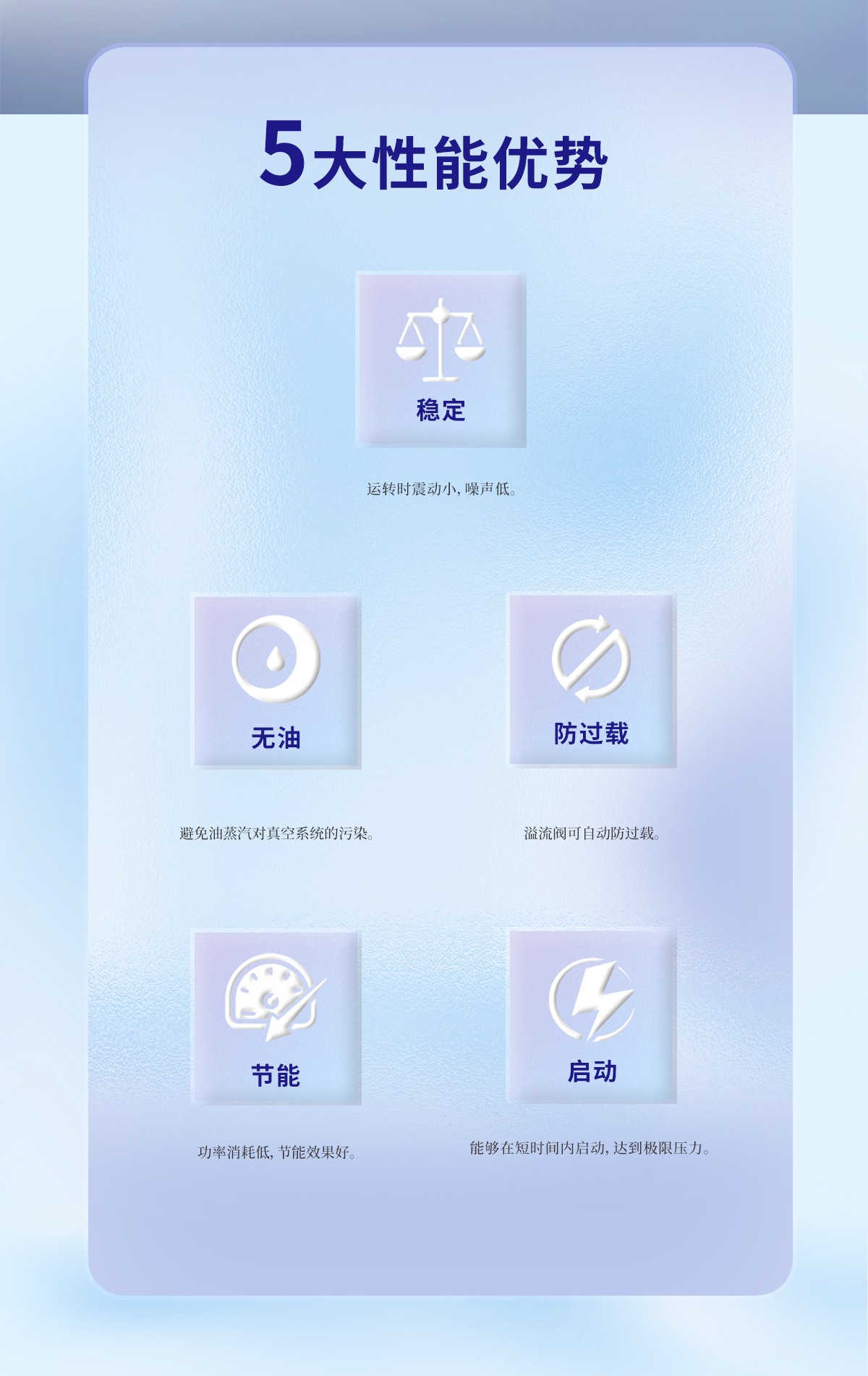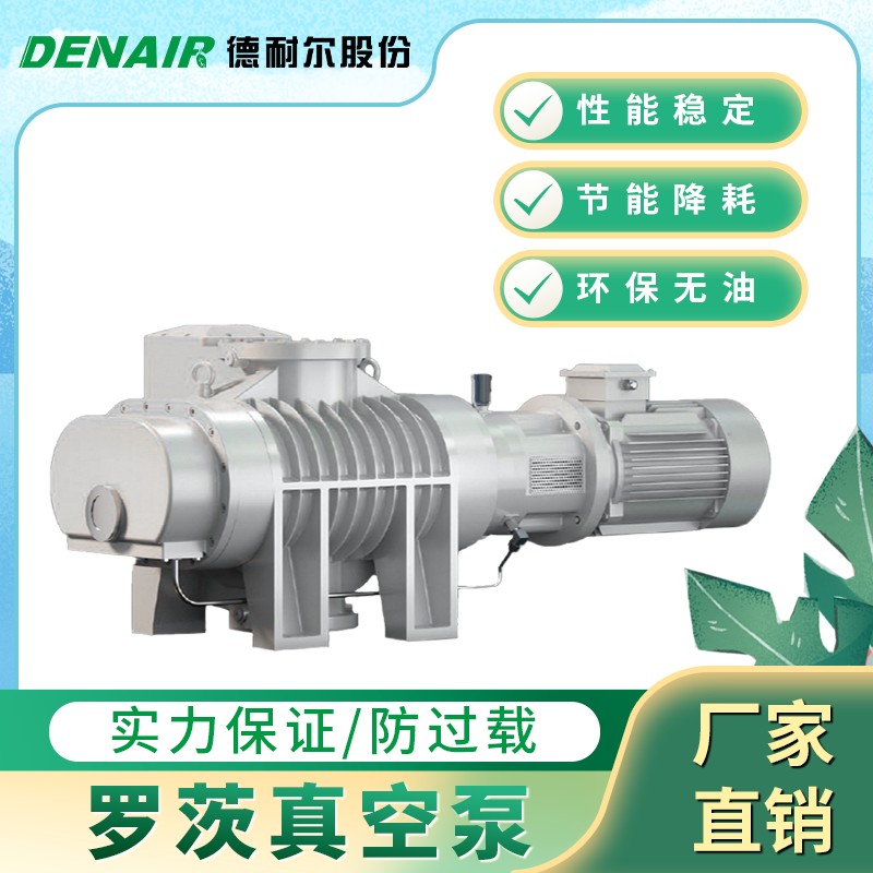 德耐尔罗茨泵是工业里的大抽速中高真空主力,本身不能独立抽大气,必须搭配前级泵(涡旋 / 螺杆泵)组成真空机组,专门弥补前级泵在中高真空段抽速暴跌的短板,主打大流量、快速抽气、洁净无油、长周期连续运行。 洁净等级:全无油干式,泵腔无油、无工作液、不返油 传动:精密同步齿轮,转子非接触无摩擦 运行:振动小、噪音低、支持 24h 连续运行 介质适配:空气、惰性气体、含水汽 / 少量粉尘气体、可凝性气体