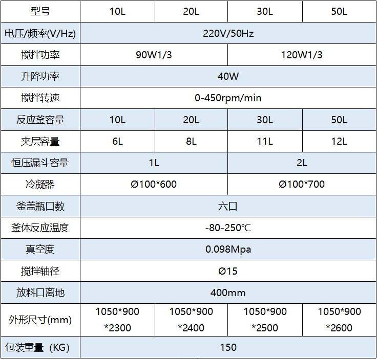 简介 通过双层反应釜夹层,注入恒温的(高温或低温)热溶液或冷却液,对反应釜内的物料进行恒温加热或制冷,并且可以提供匀速搅拌。物料在反应釜内进行反应,并能控制反应溶液的蒸发与回流反应完毕,可使釜盖及搅拌系统整体升起,釜体旋转150度,可以直接倒出比较粘稠的物料,方便清洗釜体;液体物料也可从釜底的出料口放出,操作极为方便。是现代化学小样、石油化工、中样实验、生物制药及新材料合成的理想设备。 功能及特点 •反应釜釜体采用高硼硅玻璃(GG-17材质),有优良的物理化学性能,瓶体透明、可见反应液料。 •主体采用不锈钢框架+铝合金材质,美观坚固耐腐蚀。 •不锈钢搅拌棒外包四氟,适用于多种溶剂搅拌,无污染耐腐蚀。 •搅拌电机、升降电机均采用低速增力电机,运转平稳、力矩大、无火花、寿命长。 •聚四氟乙烯组件+机械密封、专有技术、可保证良好的真空度且使用寿命长。 •本产品调速器为转速、温度双数显。转速可通过调速旋扭设定,直观方便;另配有釜内温度测温探头(PT100)(可显示釜内物料温度)。 •整体结构紧凑合理,设有带刹车万向轮,可整体移动,操作方便。 •无死角玻璃斜放料阀门,可有效减少搅拌死角,放料方便。 •本产品设有真空显示功能,对高沸点物料可以选择**工作真空度。 技术参数