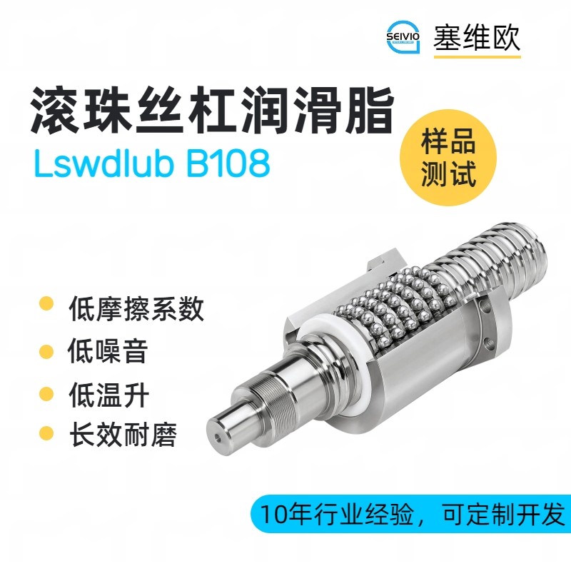 产品概述塞维欧SEIVIO Lswdlub B108 滚珠丝杆润滑脂 采用合成基础油,专用聚合物稠化,并添加极压抗磨、抗氧、抗腐蚀等多种功能添加剂精致而成的。是专门为滚珠丝杠副设计的减摩润滑材料。由于滚珠丝杠是通过钢球在螺帽与丝杠轴之间的沟槽内滚动来实现精密传动的,其润滑需求介于“直线导轨”和“高速轴承”之间。