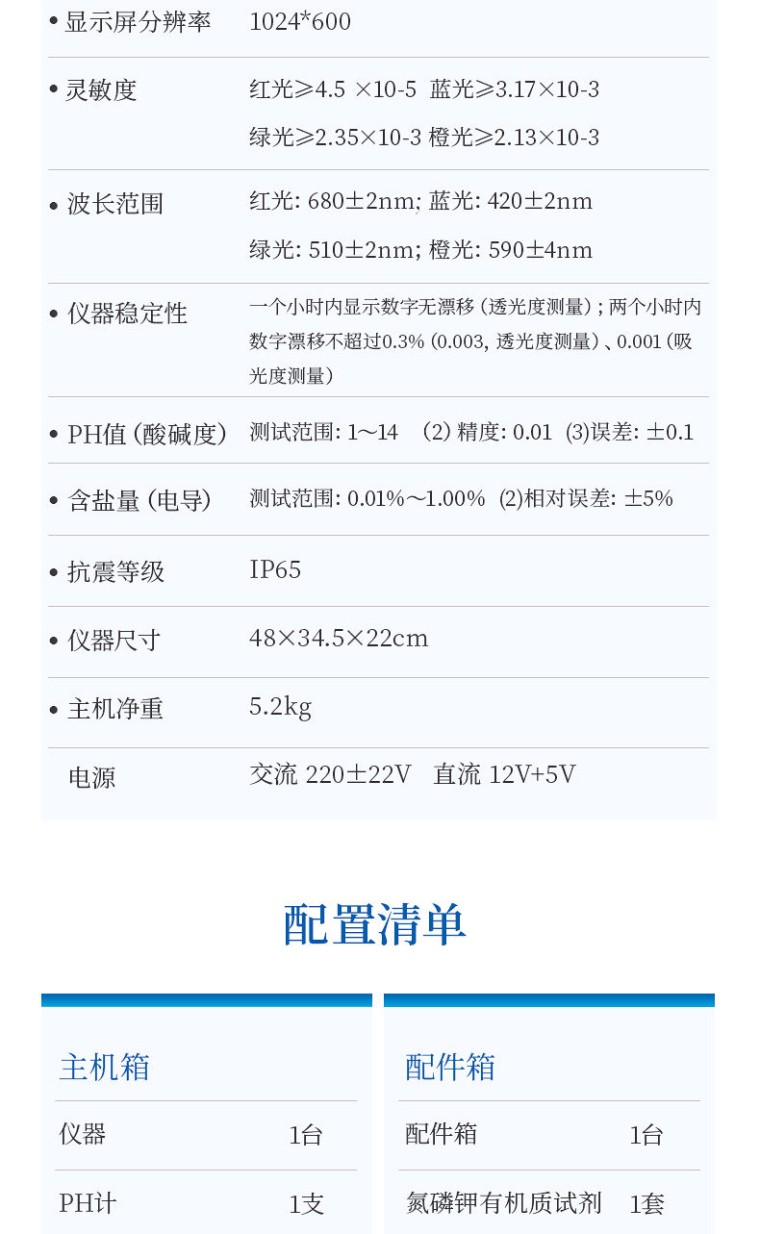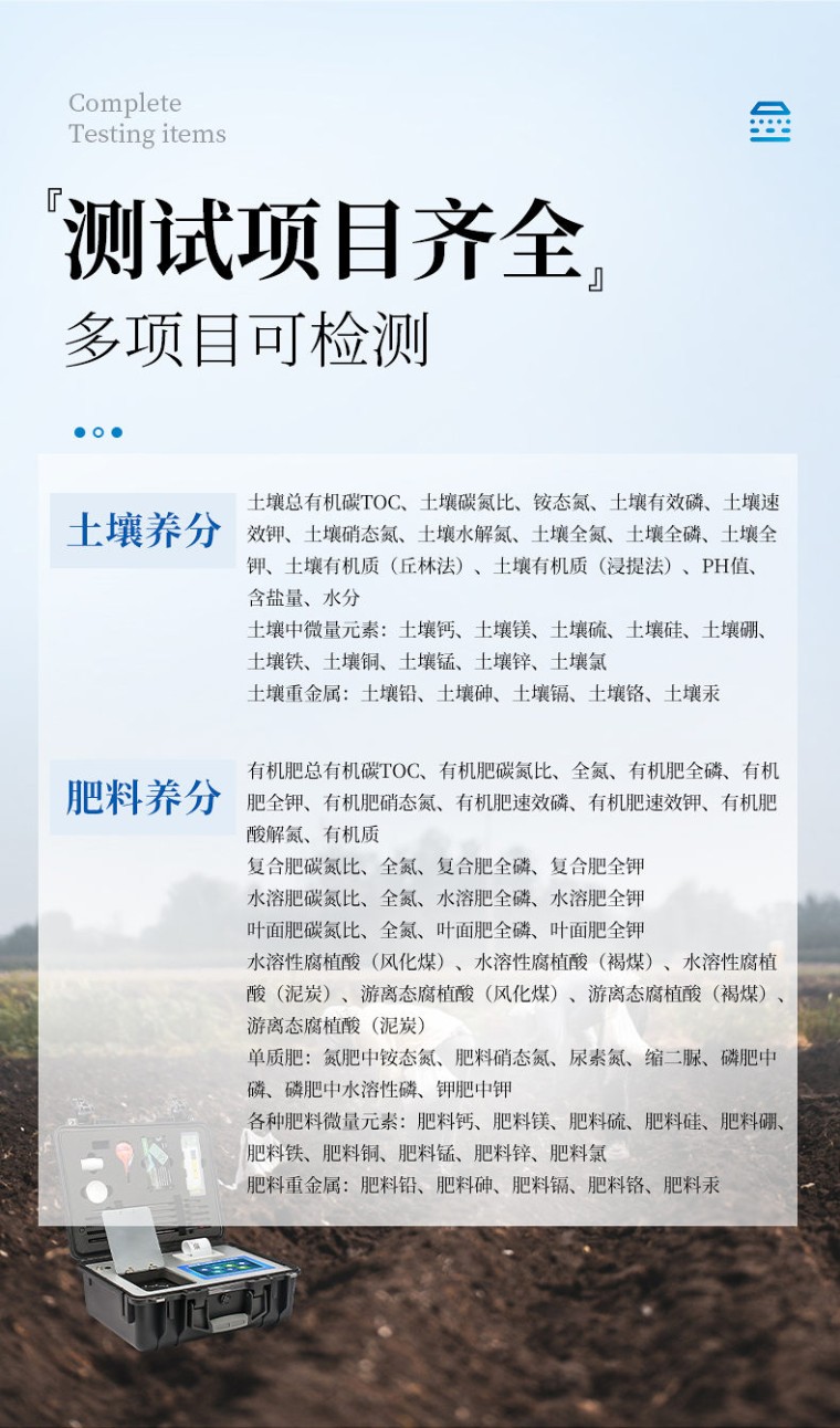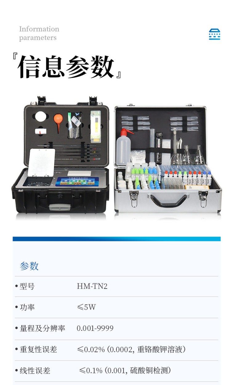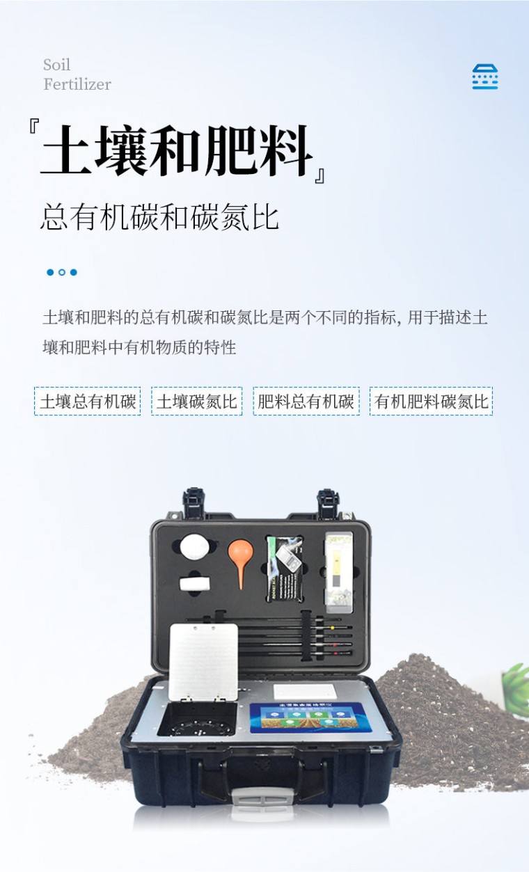 中外驰名品牌,值得信赖! 恒久品质,美创未来! 我司,诚邀全国各地贩卖商合作项目,公司全力执行区域经营和价格保护! 行业领导,众多实际用户案例 高精度全项目,多项知识产权,***机构鉴定。 品牌:恒美 型号:HM-TN2 一、产品简介: 土壤和肥料的总有机碳和碳氮比是两个不同的指标,用于描述土壤和肥料中有机物质的特性。 土壤的总有机碳和碳氮比: 土壤的总有机碳是指土壤中所有有机碳的总量,包括植物和动物残体、微生物、有机肥料等。土壤的总有机碳含量是评估土壤质量和健康程度的重要指标之一,它对土壤肥力、水分保持能力和生态系统功能具有重要影响。 土壤碳氮比的数值可以根据土壤样品的分析结果获得。一般来说,土壤有机碳含量通常较高,而有机氮含量相对较低。因此,土壤碳氮比的典型范围通常在10:1到20:1之间。不同土壤类型、土壤质地、植被类型和管理实践等因素会对土壤碳氮比产生影响,因此具体数值可能会有所不同,其意义在于它可以提供有关土壤养分循环和有机质分解的信息。 低碳氮比(较低的值)通常表示土壤中有机质的降解速度较快,有机氮相对较高,土壤肥力可能较高。高碳氮比(较高的值)通常表示土壤中有机质分解速度较慢,有机氮相对较低,土壤肥力可能较低。因此,适当的碳氮比有助于维持土壤的健康和肥力。 肥料的总有机碳和碳氮比: 有机肥和堆肥的总有机碳含量取决于原料的类型和堆肥过程的处理方式。通常情况下,堆肥含有较高的总有机碳,而有机肥的总有机碳含量则因其原料的不同而异。了解其总有机碳含量对于评估其养分供应能力和土壤改良效果具有重要意义。这些指标可用于指导有机肥料的选择和合理施用,以满足作物对养分的需求,并改善土壤质量和生态系统的健康。 有机肥料的碳氮比可以有很大的变化,具体取决于有机肥料的种类和原料组成。一般来说,有机肥料的碳氮比较低,通常也在10:1到20:1的范围内。不同种类的有机肥料具有不同的碳氮比。例如,家禽粪便的碳氮比大约在10:1到15:1之间,而豆类植物残渣的碳氮比可能更接近20:1。此外,堆肥过程中的处理方法、原料的比例以及分解程度也会影响有机肥料的碳氮比。 二、功能多、测试项目齐全: 1、土壤养分:●土壤总有机碳TOC、土壤碳氮比、铵态氮、土壤有效磷、土壤速效钾、土壤硝态氮、土壤水解氮、土壤全氮、土壤全磷、土壤全钾、土壤有机质(丘林法)、土壤有机质(浸提法)、PH值、含盐量、水分。●土壤中微量元素:土壤钙、土壤镁、土壤硫、土壤硅、土壤硼、土壤铁、土壤铜、土壤锰、土壤锌、土壤氯;●土壤重金属:土壤铅、土壤砷、土壤镉、土壤铬、土壤汞。 2、肥料养分:●有机肥总有机碳TOC、有机肥碳氮比、全氮、有机肥全磷、有机肥全钾、有机肥硝态氮、有机肥速效磷、有机肥速效钾、有机肥酸解氮、有机质;●复合肥碳氮比、全氮、复合肥全磷、复合肥全钾;●水溶肥碳氮比、全氮、水溶肥全磷、水溶肥全钾;●叶面肥碳氮比、全氮、叶面肥全磷、叶面肥全钾;●水溶性腐植酸(风化煤)、水溶性腐植酸(褐煤)、水溶性腐植酸(泥炭)、游离态腐植酸(风化煤)、游离态腐植酸(褐煤)、游离态腐植酸(泥炭);●单质肥:氮肥中铵态氮、肥料硝态氮、尿素氮、缩二脲、磷肥中磷、磷肥中水溶性磷、钾肥中钾;●各种肥料微量元素:肥料钙、肥料镁、肥料硫、肥料硅、肥料硼、肥料铁、肥料铜、肥料锰、肥料锌、肥料氯;●肥料重金属:肥料铅、肥料砷、肥料镉、肥料铬、肥料汞。 三、测试效率: 土壤中速效N、P、K等多种养分一次性同时浸提测定(农业部速测行业标准起草者)。 肥料中氮(N)、磷(P)、钾(K)等养分同时、快速、准确检测。 测试速度:正常熟练程度下: 测一个土壤样品(N、P、K)三项需要20分钟(含药剂准备及土样前处理时间),同时检测三个土壤样品(N、P、K)≤40分钟,同时测8个土样≤1小时。 测试一个肥料样(N、P、K)≤50分钟,同时检测三个肥料样品(N、P、K)≤1.5小时。 四、测试误差: 土壤氮磷钾误差≤1%,有机质误差≤2%,微量元素相对误差≤5%;肥料单项误差≤0.5%,氮磷钾三项误差≤1%; 重金属相对误差小于等于5%。 五、功能特点: ★1、Android安卓智能操作系统,主控芯片采用ARM Cortex-A7,RK3288/4核处理器,主频1.88Ghz,运转速度更快速,稳定性更强。 ★2、采用精密旋转比色池设计(专利号:ZL 2018 2 1777724.7),光源一致性更加精确,保证检测精度。 ★3、12个旋转检测通道,一次性可快速检测12个样品,极大提升检测效率,降低检测成本。 ★4、采用高精度滤光片技术自主专利分析方法(专利号:ZL 2020 2 1763837.9),权威认证。 ★5、检测过程中内置校准功能,智能恒流稳压,光强自动校准,确保检测准确度,取得中国计量科学研究院的《校准证书》。 ★6、仪器标配wifi无线上传、4G联网传输、GPRS无线远传,快速上传数据。 ★7、配有智慧云农业平台,仪器连入无线网络后,可将检测数据可选择性或批量无线上传,方便用户进行长期数据管理和可视化分析。 8、仪器配同时具有USB接口、以太网接口,内置大容量内存,并可随时用U盘拷贝数据。 ★9、可用手机随时登录云平台在线移动查看历史数据 ★10、内置作物专家施肥系统,可对百余种全国农业经济作物、果树等的目标产量计算推荐施肥量,依据施肥配方科学指导农业生产。测土配方施肥结果可打印,打印内