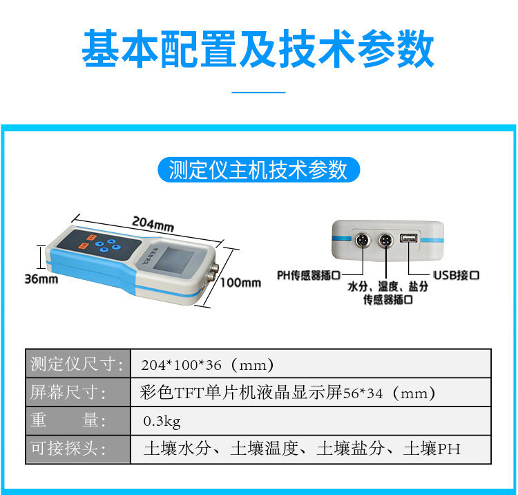 简介: 土壤PH测定仪采用一体化结构设计,外置SD卡,主机可以实时采集被测环境土壤的温度、水分、盐分、PH等多个参数,一键上传数据等。 技术参数: .PH测量范围:0-14分辨率:0.01测量精度:±0.1 .供电方式:锂电池或交流电供电.软件:上位机软件免费赠送 .智能电极:采用高精度二合一复合电极,智能温度补偿功能 突出性能: .采用一体化结构设计,外置SD卡,能准确的测量出被测地点的PH,一键上传被测点的环境因子测量数据等。还可以通过上机位软件直接把数据导出到电脑上。 .本机体积小巧、美观,操作简单方便,性能可靠,野外携带极为方便。主机连接传感器后可以手动存储记录也可通过主机任意设置采样间隔,自动存储记录数据。 .大屏幕中文液晶显示,全程跟踪记录各个被测环境因子的数值、组数、低电压示警,主机内置大容量存储器,可储存三十万条数据,具有断电数据自动存储保护功能。 .传感器插入主机后,主机具有自动识别功能,传感器一致性好,可按需求自行组合传感器,不同参数的传感器接口可以互相转换,对测量精度没有影响。 .仪器具有多通道自动检测扩展功能,可以实现多个传感器同时接入的同步检测。 .上位机软件功能强大,随时可以通过USB接口将记录中的数据导出到计算机上,并可以存储为EXCE表格文件,生成数据曲线,以供其它分析软件进一步进行数据处理。具有设置超限区域着色功能,超限数据变色预警,可作为环境评价的一个依据。 .广泛应用于土壤酸碱度的检测、旱作节水灌溉、精细农业、林业、地质勘探、植物培育、水利、环保等领域。