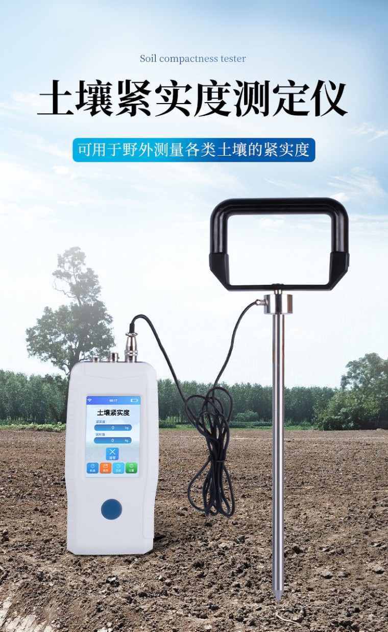 一、仪器简介 本设备是一种由手持式采集仪和紧实度传感器所组成的一套土壤墒情监测系统。同时具备操作简便,携带方便,检测迅速可靠等优点,在领域中可谓独树一帜。手持式采集仪可根据用户需要出厂配置GPS、GPRS数据上传等功能,设备中的数据也可以通过USB数据线连接电脑,并将历史数据导出到电脑中进行数据分析。 土壤紧实度又叫土壤硬度或土壤坚实度或土壤穿透阻力。一般用金属柱塞或探针压入土壤时的阻力表示(单位为Pa)。土壤紧实度是指土壤抵抗外力的压实和破碎的能力,是土壤性质的其中一个方面。另外,土壤物理性包括土壤质地、结构、孔隙性等,涉及到土壤的坚实度、塑性、通透性、排水、蓄水能力、根系穿透的难易等。 土壤紧实度由土壤抗剪力、压缩力和摩擦力等构成。是土壤强度的一个合成指标。金属柱塞或探针压入土壤时分动载和静载两种方法,不同方法的测定值不同,但有联系。柱塞的形状有锥体、平头、圆球及楔子等,这些对测定值也有影响。对同一种方法的测定值,主要决定于土壤质地、容重和含水量。其中含水量的影响最大。土壤紧实度可预测土壤承载量、耕性和根系伸展的阻力。土壤紧实度的大小可影响作物根系的穿孔和生长,是一个重要的土壤物理特性指标,用于评价土壤耕性。紧实的土壤可阻止水分的入渗,降低化肥的利用率,影响植物根系生长,导致作物减产。 二、技术参数 显示屏:2.4英寸彩色TFT液晶 接口:电源接头:5.5*2.5/2.1;USB接口:连接电脑;航空插头:RS485 存储:大容量FLASH存储器;可存储10万条数据;自动存储:1S~180S可调 定位:GPS GSM上传:GPRS/2G/4G 电池:12V 2500mah锂电池;工作时间:10H;充电时间:3H 导出:USB线连接电脑上位机,导出Excel表格 单位:kg/cm²;LB;N/cm²;Kpa 土壤紧实度传感器: 量程:0~100kg 灵敏度:2.0±0.1mv/V 综合精度:0.1%F∙S 重复性:±0.05%F∙S 工作温度:-20~﹢70℃ 探针材质:不锈钢 输入阻抗:735 ±35Ω 输出阻抗:700±3Ω 非线性:±0.05 %F∙S 密封等级:IP66 激励电压:5~12 VDC 线缆:φ3×2000mm 三、配置清单