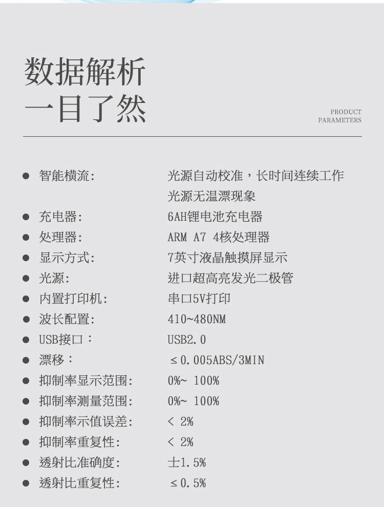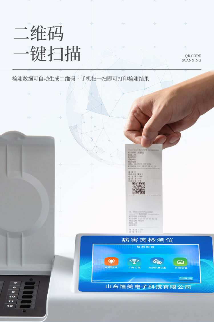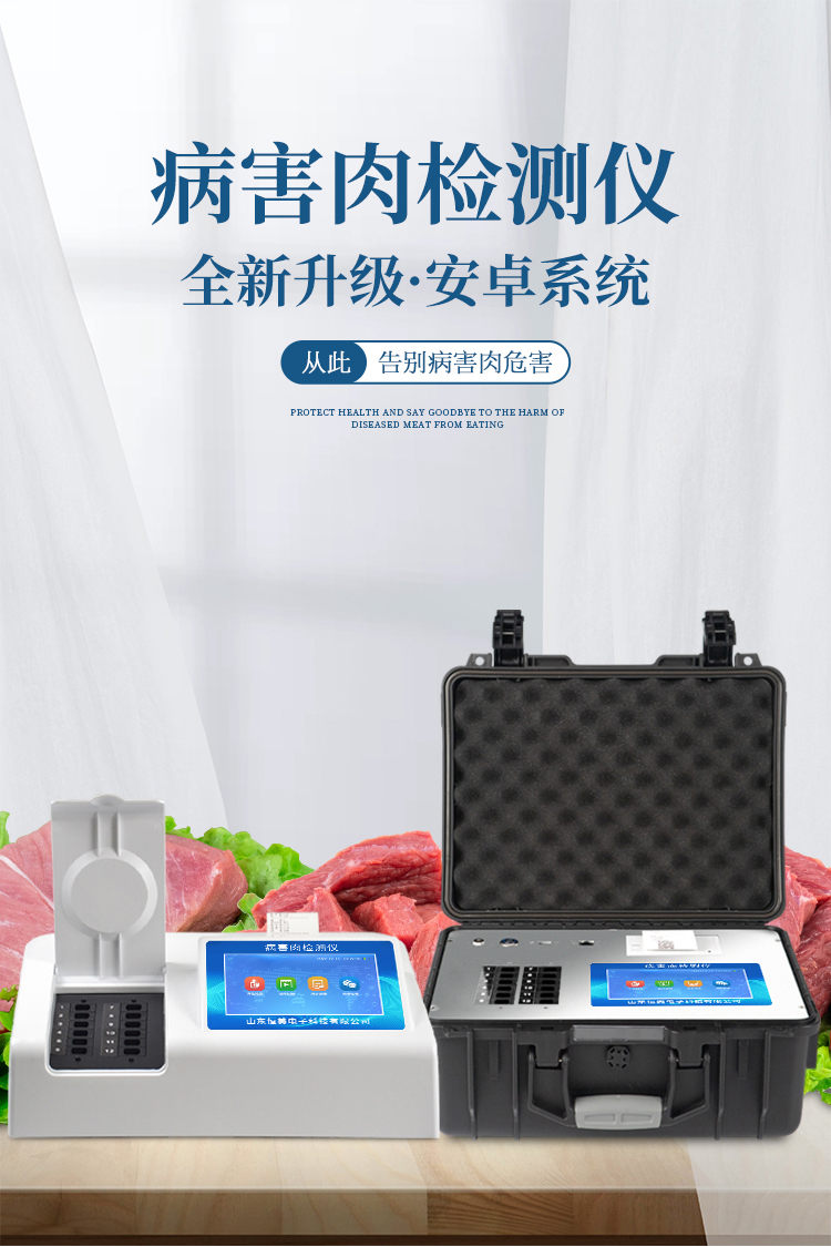 产品用途: 挥发性盐基氮检测仪器为集成一体化食品安全快速检测分析设备,广泛应用于食药监局、卫生部门、高教院校、科研院所、农业部门、养殖场、屠宰场、食品肉产品深加工企业、检验检疫部门等单位使用。 检测项目: 可快速检测病害肉中挥发性盐基氮,仪器预留其他项目检测程序和端口,根据日后需求可方便的自主增加检测项目。 【适用样品】 猪肉、牛肉、羊肉、鱼类等 功能介绍: 1、安卓智能操作系统,采用更加高效和人性化操作,仪器具有网线连接、wifi联网上传、GPRS无线远传功能,快速上传数据。 2、智能化程度高,仪器具有自检功能:具有开机自检和调零功能,具有自动检测重复性功能。 3、检测通道:≥12个检测通道,可以同时测试多个样品,每个样品由程序控制分别独立工作,不会互相干扰。 4、显示方式:≥8英寸液晶触摸屏显示,人性化中文操作界面,读数直观、简单。 5、配备新一代嵌入式热敏打印机,可选择手动打印或者自动打印,检测完成可自动打印检测报告和二维码。 6、光源采用进口超高亮发光二极管,高精度、稳定性强、光源可控、可以关掉不使用的光源,功耗更低。 7、采用USB2.0接口设计,方便数据的存贮和移动,并可随时与计算机直接相连,并且可用计算机控制仪器。实现数据查询、浏览、分析、统计、打印等。 8、仪器带有监管平台。数据可局域网和互联网数据上传,检测结果直接传至食品安全监管平台。进行区域食品安全监管及大数据分析处理,检测区域食品安全长短期动态,达到食品安全问题预估、预警 9、仪器具有品类多种类样品菜单库,可灵活选择检测样品,不同的检测通道可同时检测不同的样品项目。 10、样品处理简单省力,整体操作快速、安全、便捷。 11、仪器具有自身保护功能,可设置用户名及密码,防止非工作人员操作等。 12、高灵敏度,高检测精度,高重复性精度,扫描式高精度光学传感器。 13、内置强大的数据库,可在仪器上直接选择样品名称、检测指标、送检单位等信息,也可在仪器上直接编辑录入样品名称、检测指标、送检单位等信息并保存进样品数据库。 14、仪器具有重新校准、锁定、恢复出厂设置功能。 15、支持U盘存储。 结果判定线可修改,对照值标定值可保存,断电不丢失数据。 主要参数: 1、主控芯片采用ARM Cortex-A7,RK3288/4核处理器,主频1.88Ghz,运转速度更快速,稳定性更强。 2、直流12V供电,可连接车载电源,可配6ah大容量充电锂电池,方便户外流动测试。 3、双波长冷光源,每个通道均配置405nm、520nm波长光源,标配先进的光路切换装置,专利光路切换功能可实现最多64波长,并且所有检测项目可实现所有通道同时检测。 4、光源亮度自动调节与校准 5、智能恒流稳压,光强自动校准,长时间连续工作光源无温漂现象。 6、不间断进样,连续检测 7、样本编号自动累加。 8、检测项目可扩充。 9、检测结果可批量打印,批量上传。 10、检测结果为Excel表格,连接电脑即可拷贝。 11、检测结果存储容量20万条 12、标准USB接口,免驱动安装。 13、可配置大容量锂电池,固件可升级 技术参数: ☆精度误差:±3% ☆线性误差:±5‰ ☆稳 定 性: ±0.001A/hr ☆波长准确度:<2.0nm ☆波长范围:450nm ☆波长范围:410nm ☆波长范围:480nm ☆新鲜度:检测下限 20mg/kg 线性范围 0-1000mg/kg ☆挥发性盐基氮:检测下限:10mg/kg 线性范围:0-300mg/kg ☆透射比重复性:±1% ☆数据储存80,00条 ☆比色皿:10×10mm标准样品池 ☆外观尺寸:400x300X180(mm) 【符合标准】 GB2707-2005《鲜(冻)畜肉卫生标准》规定:鲜畜产品、冻畜产品TVB-N应≤15mg/100g, GB16869-2005《鲜(冻)禽肉卫生标准》规定鲜禽产品、冻禽产品TVB-N应≤15mg/100g, GB2733-2005《鲜(冻)动物性水产品卫生标准》规定海水鱼、虾、头足类TVB-N应≤30mg/100g,淡水鱼、虾TVB-N应≤20mg/100g.