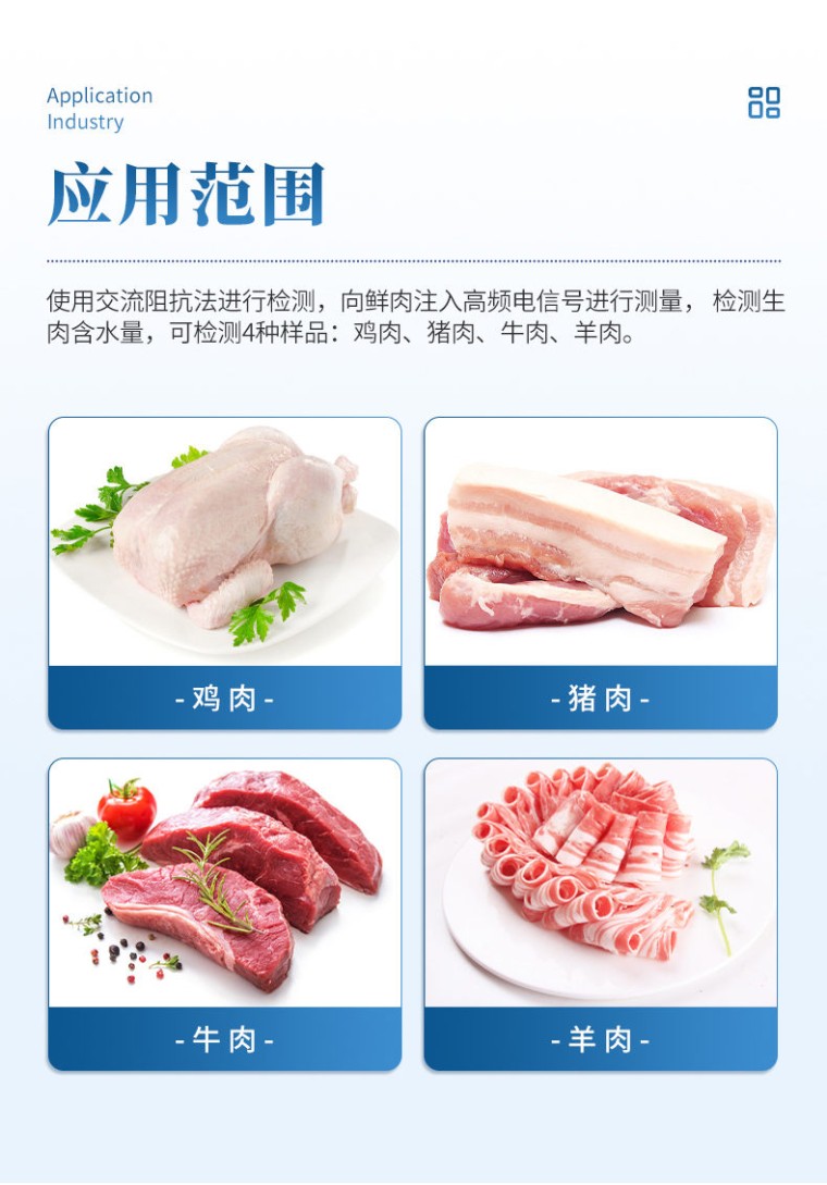仪器概述 肉类含水量检测仪通过向样品注入高频电信号并接收回波测量生肉含水量,相比GB18394-2020国标文件中的5.2节红外线干燥法(快速法)更快速便捷,具有不需要制备样品,检测迅速,操作方便的优点。 技术指标 检测生肉含水量,可检测4种样品:鸡肉、猪肉、牛肉、羊肉。 使用交流阻抗法进行检测,向鲜肉注入高频电信号进行测量,具有检测速度快,重复性好,对样品损伤小等优点。 1. 分辨率:0.1% 2. 精度:3% 3. 重复性:0.5% 4. 不连接充电器的续航时间:探头3小时。 仪器特点: 1.配备安卓手机app,可通过手机蓝牙快速与探头快速链接; 2.操作方便一键式操作; 3.与手机端无线链接,可通过手机端存储,上传等操作; 装箱单 序号 名称 数量 单位 1 探 头 1 台 2 电源线 1 条 3 充电头 1 个 4 说明书 1 份 5 合格证 1 份 6 装箱单 1 份