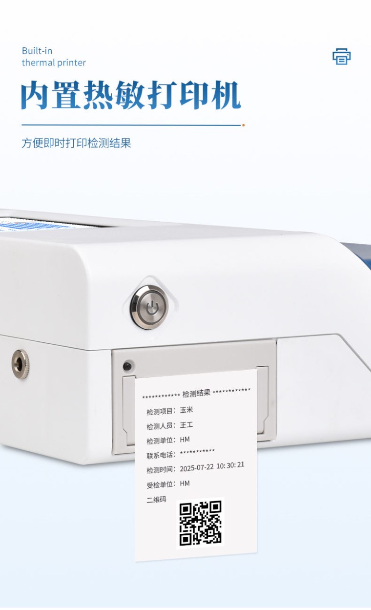 一、产品简介: 荧光定量检测仪采用荧光定量快速检测原理,主要检测粮油谷物饲料中真重金属铅和镉,检测样品涵盖粮食谷物(大米、玉米、小麦、大麦、高粱等)及其制品、饲料及其原料、食用油脂、牛奶及其制品等;样品前处理简单,整个检测过程检测12 min,产品适用于地方粮库、谷物生产企业、饲料厂、各类畜牧养殖企业、面粉厂、食品加工厂、第三方检测机构及各级政府监管部门; 二、产品特点 1、 智能操作:安卓智能操作系统,10.1英寸高清彩色触摸屏,操作、显示更直观流畅; 2、 稳定性极高:采用进口荧光微球,颗粒均一,从源头保证产品稳定性好,批次内、批次间重现性好;配备8孔恒温孵育器,一条一孔,自动计时,蜂鸣提醒,不受外界温湿度影响,适用场地更广; 3、 快速准确定量:集胶体金快速,酶联免疫定量、色谱准确检测的特点于一身,实现快速准确定量检测; 4、 内置定量标准曲线:仪器内置标准曲线,无需使用标准品,检测时无需做标准曲线,既节省了成本,也避免了操作人员与呕吐毒素的接触,保护操作人员的安全; 5、 配套要求低:对配套的前处理仪器设备及人员要求低,操作人员仅需简单培训或通过仪器内操作视频即可学会; 6、 移动便携:仪器质量轻,体积小,配置全套前处理设备和拉杆箱,适用于现场测试及实验室测试。 7、 内置热敏打印机,可及时打印检测信息,检测数据可上传监管平台功能。 8、 超大存储:8G超大存储内存,可储存超1000000条检测数据,可拓展支持扩展 MicroSD(TF)卡,便于数据查找追溯。 9、 判断:可设置每个项目的上限值,检测完成后,仪器自动判断是否超标并保存。 10、 节约成本:相对色谱检测,耗材成本极低,并且节省人力物力,大幅降低检测费用; 11、 插卡判断:检测卡未插入检测通道不能 12、 内置质控功能,可设备送检、设备自检、试剂卡自 13、 检测曲线:可以对试剂卡的检测核验,防止误判 14、 项目管理:支持检测项目拓展功能 15、 界面设置:可修改标题和页尾信息,灵活展示仪器信息 16、 打印机:热敏打印机(热敏打印纸:57*30mm) 17、 数据传输:WiFi、蓝牙、USB、射频读卡、扫码模块 18、 数据处理:可通过通讯端口进行数据汇总、上传监管平台等 19、 恒温孵育器:8通道独立控制,插入自动计时,并可孵育1.5ml样品管; 三、技术参数 1、屏幕尺寸:10.1英寸高清显示屏;分辨率:1280*800;内存:1+8G 2、操作系统:Android7.1.1; 3、检测方式:反射式光电4、检测原理:荧光免疫层析法; 4、适配卡壳:70mm*20mm 5、解锁方式:密码 6、语言:中/英文 7、存储数量:10万+ 8、检测通道:单通道; 9、检测器/光源:光电池,365nm光源; 10、检测速度:单次检测耗时<5秒;可对样本进行荧光定量11、检测方式:自动扫描; 11、准确性:误差值≤ 5% 12、稳定性:SW(波动系数)≤5% 13、重复性:CV(变异系数)≤3% 14、分辨率:0.001 15、接口:USB接口:2个;USB-B接口:1个;LAN接口:1个 ;DC电源接口:5.5/2.1mm 16、电源:输入:AC100V-240V/1.3A 50Hz;输出:DC12V/5A 17、使用环境:温度:0~50℃;湿度:0~90% 18、仪器尺寸:300*235*125mm; 19、主机净重量:2.2kg; 20、配件箱:740mm*490mm*310mm精密仪器拉杆箱,**级防震/IP54防水,静音万向轮+航空铝材,轻量化设计更便携