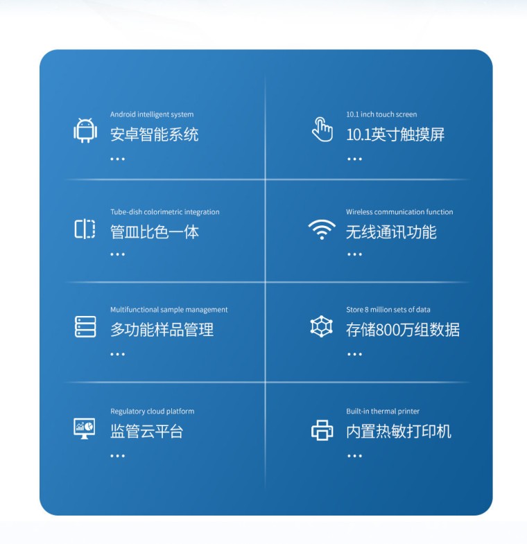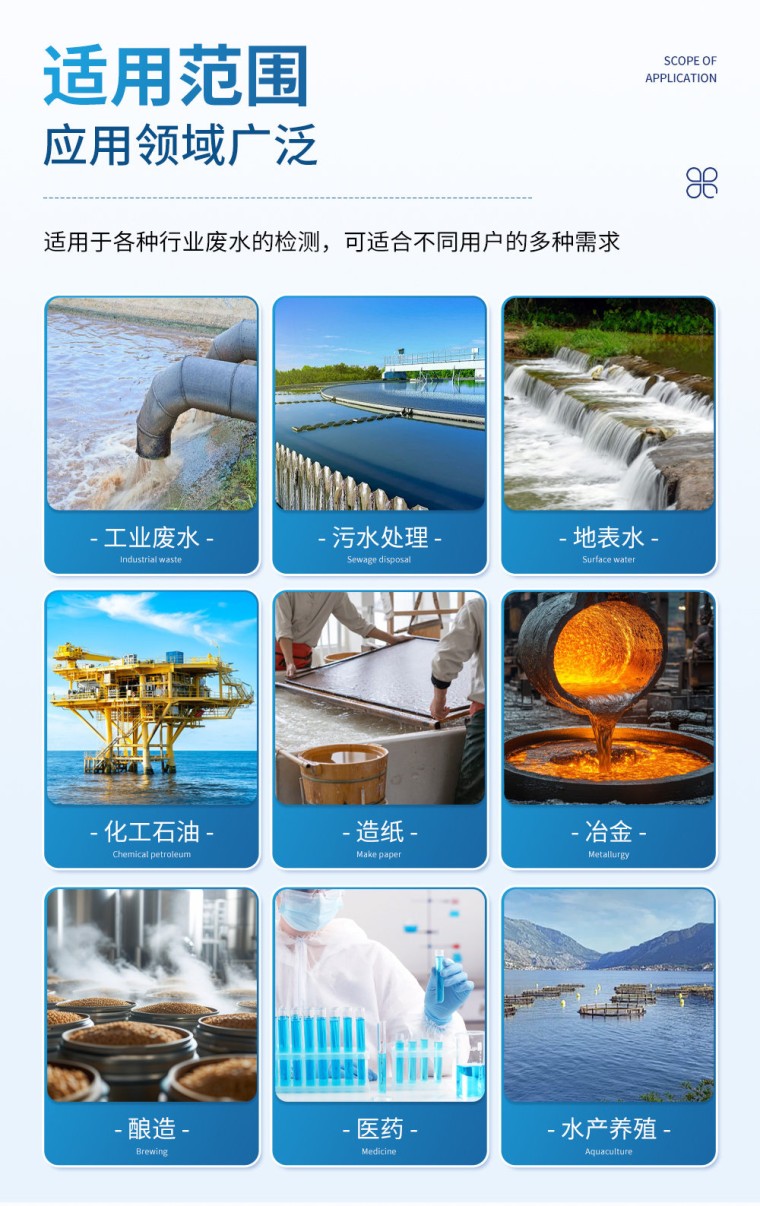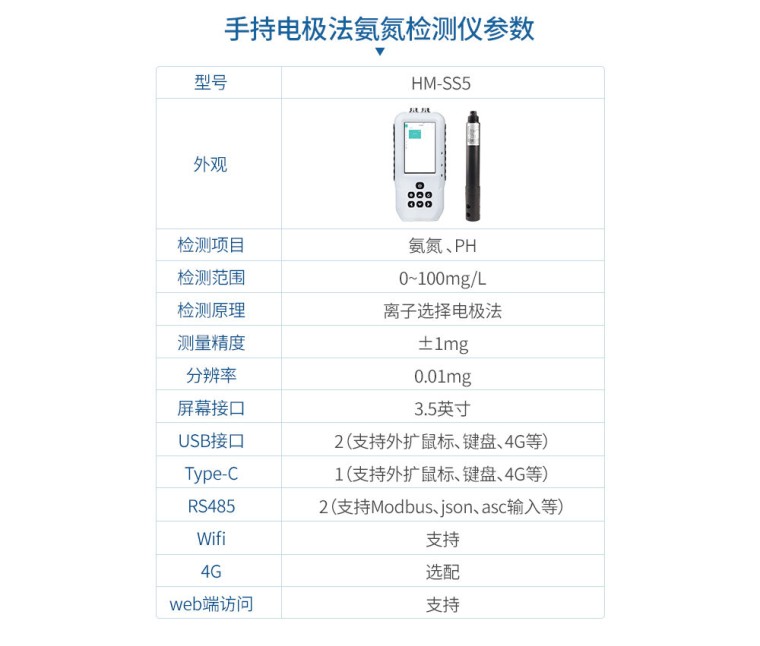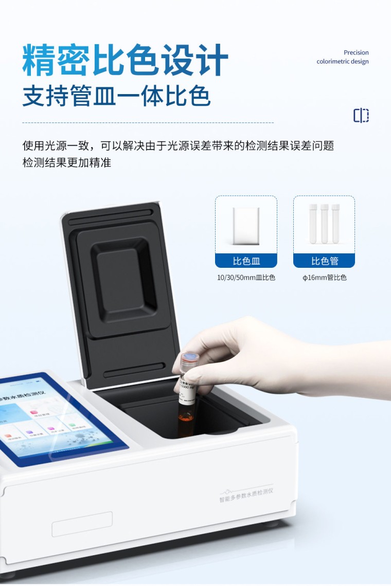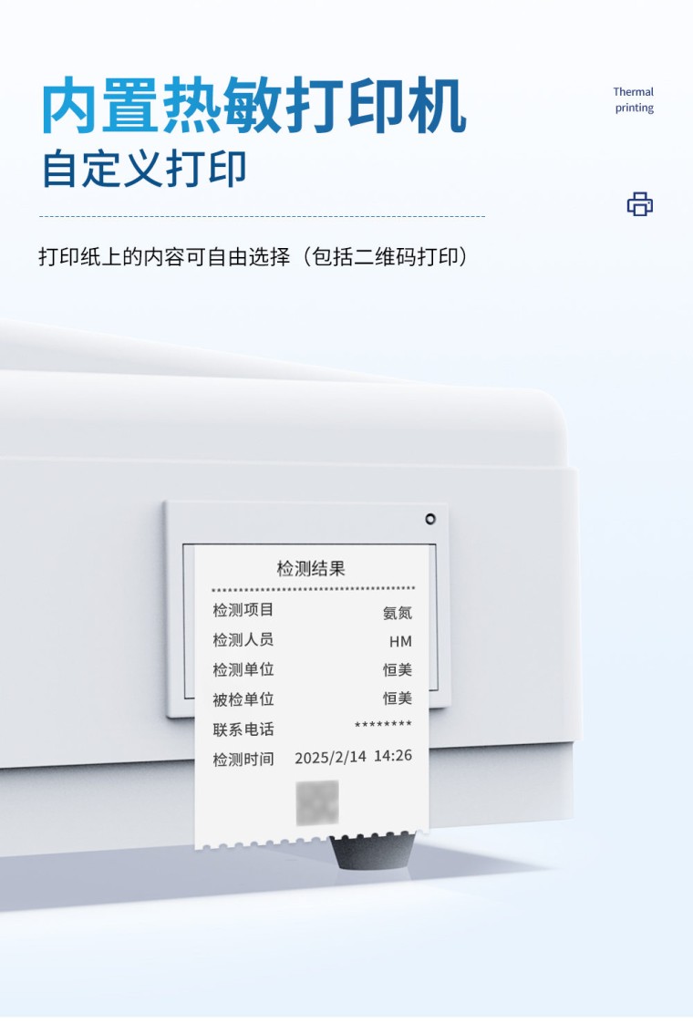 一、设备简介: 智能氨氮快速检测仪主要检测水体中的氨氮含量;设备内置多个光源,对应不同的检测波长,可同时满足纳氏试剂法和水杨酸法检测水体中的氨氮含量。纳氏试剂法参考环境标准HJ 535-2009 《水质 氨氮的测定 纳氏试剂分光光度法》,水杨酸法参考环境标准HJ 536-2009 《水质 氨氮的测定 水杨酸分光光度法》。本仪器兼具智能数据分析功能,图表、列表显示数据,分析一目了然;高清晰度彩色液晶触摸显示屏,Android智能操作系统,中文显示界面,中英文键盘,人性化操作,使用更简单。 二、应用广泛: 能够广泛的应用于各种行业(工业废水、城市污水、生活污水及江湖流域地表水)废水的检测,可适合不同用户的多种需求,可在化工、石油、焦化、造纸、冶金、酿造、医药等工业废水及各种生活污水监测应用。 三、功能特点: 1、采用全新安卓7.1.1智能操作系统,人性化中文操作界面,运转速度更快速,稳定性更强。 2、10.1英寸液晶触摸屏显示,人性化中文操作界面,读数直观、简单。 3、采用精密比色池设计,使用光源一致,可以解决由于光源误差带来的检测结果误差问题,检测结果更加精准。 4、光源采用进口超高亮发光二极管,光源亮度可以自动调节与校准。 5、支持10mm、30mm、50mm皿比色和φ16mm管比色等比色方式,多元选择,确保测量的准确性; 6、具有无线通讯功能,支持WIFI、RJ45、手机热点联网传输,检测数据亦可通过U盘导出; 7、多功能样品管理,可对样品进行中英文命名,方便样品记录和数据存储; 8、仪器可**存储800万组数据,为方便大量数据查找,可通过时间检索,并随意选择分析; 9、仪器带有监管云平台,数据可通过局域网和互联网上传,亦可对接上传至环境监管部门平台。 10、内置热敏行式打印机,打印纸上的内容可自由选择(包括二维码打印); 11、交流220V,可选配6ah大容量充电锂电池,方便户外流动测试; 12、内置教学演示视频,用户可一边看仪器内操作视频,一边进行实验操作,更易上手。 13、后期产品固件可升级。 四、技术参数: 示值误差:≤±5%; 仪器稳定性:<0.5%; 仪器重复性:<0.5%; 光化学稳定性:20min内数值漂移≤0.002A(10万小时寿命); 检测方法:纳氏试剂分光光度法;水杨酸分光光度法 参考标准:HJ535-2009; HJ536-2009 测定范围:0-200mg/L(分段); 检测下限:0.05mg/L(纳氏试剂法); 0.02mg/L(水杨酸法); 五、物理参数: 操作系统:Android 7.1.1 智能操作系统; 显示屏:10.1英寸高清晰度彩色液晶触摸屏; 网络接口:USB2.0、WiFi、蓝牙、热点、RJ45; 操作界面:中文/英文(出厂可选); 比色方式:比色管、比色皿; 打印机:热敏行式打印机; 通讯接口:USB2.0; 供电方式:交流220V,可选配大容量充电锂电池; 数据导出格式:Excel表格; 云平台:仪器带有监管平台,连接网络,检测结果直接传至环境安全监管平台; 仪器尺寸:444 x 303 x 173 mm; 仪器重量:5.2kg(不含适配器或充电器及电池); 六:环境及工作参数: 环境温度:(5 - 40)℃; 环境湿度:相对湿度<85%(无冷凝); 额定功率:20W 工作电源:AC220V±10%/50Hz; 可配置:大容量锂电池。