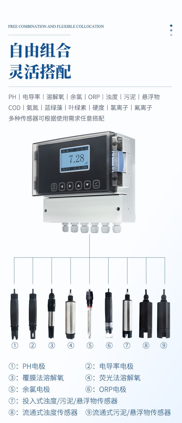 PH在线监测仪是一种常用的仪器设备,主要用来精密测量液体介质的酸碱度/氧化还原电位值,广泛应用于工业、农业、科研、环保等领域。 测量原理 测量电极浸入溶液中,H+离子在电极膜和溶液之间产生电池电压,电极产生的电池电压与PH值成正比。控制器内置微机电路通过测量电池电压获得PH值。 标准液配置 发货时,随机带三包PH标准缓冲液,分别是4.01、6.86、9.18标准缓冲液。 PH标准液配置 4.01 PH标准液 4.01标准缓冲液放入容器中,兑入250mL纯净水,搅拌均匀后方可使用。 6.86和9.18标准缓冲液的配置方法同4.01标准缓冲液配置方法相同。 PH标定 将PH电极放入1号标准液(4.01或6.86)中,进入标定菜单--低点标定,等待稳定大约5分钟后输入此标准液值,按ENTER确认储存。 将PH电极放入2号标准液(9.18或6.86)中,进入标定菜单--高点标定,等待稳定(大约5分钟)后输入此标准液值,按ENTER确认储存。 系统自动计算参数,如果标定后仍有误差请重新标定。 注意:高点标定使用的标准液一定要大于低点标定使用的标准液。 仪表特点: ❊点阵LCD液晶屏显示 ❊智能菜单操作 ❊多种自动标定功能 ❊多种信号输出方式 ❊手动、自动温度补偿 ❊三组继电器控制开关 ❊高限、低限、迟滞量控制 ❊同界面显示pH/ORP、温度、状态等 技术参数: 产品名称:在线PH/ORP计 产品型号: 测量范围:pH:0-14.00 ORP:-2000+2000mV 温度:0-150℃(根据电极) 测量精度:pH:±0.02pH ORP:±1mV 温度:±0.3℃ 温度补偿:自动或手动 分辨率:pH:0.01pH ORP:1mV 温度:±0.1℃ 稳定性:pH:≤0.01pH/24h;ORP: ≤1mV/24h 继电器:三组 5A 240VAC/5A 28VDC或120VAC 供电电源:85~265VAC或9~36VDC,功率:≤3W 电流输出:标配2路4-20mA 通讯输出:标配RS485 Modbus RTU 外形尺寸:215*125*80mm 开孔尺寸:- 防护等级:IP65 安装方式:壁挂 仪表重量:1.5kg 环境温度:-10~60℃;相对湿度:≤90%; 除地球磁场外周围无强磁场干扰