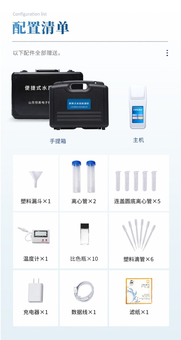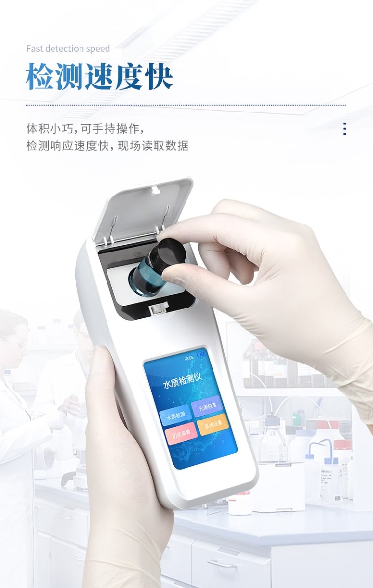 便携式水质臭氧检测仪器配合快速显色检测试剂,可“快速、简单、准确、稳定”进行测量,拥有精美的外观造型,简单的操作界面,准确的检测系统,帮助用户获得精细的数据,可更准确、有效的分析水体状况,提前预防,及时避免损失。 应用行业: 适用于 游泳场馆、饮用水、自来水、医疗废水、工业污、河流监测、水源保护、生产监测、科研实验等。 仪器特点: ①安卓智能系统,操作更佳简便快捷; ②配置云监控平台,检测结果可直接无线传至平台,进行水质长短期分析,辅助管理。 ③内置操作流程、操作简单、无需培训、直接上手; ④检测速度更快,现场读取数据; ⑥便携式体积小,重量轻,方便户外检测; ⑦外形小巧美观,工作稳定免维护,具有较好的性价比; ⑧采用进口冷光源,光学性能稳定,寿命长达10万小时; ⑨交直流两用,内置充电锂电池,环保耐用可支持连续室内外工作。 参数指标: 臭氧:0.02~1mg/L,0.2~10mg/L; 依据标准:HJ 504-2009 测量方式:光电比色 重复性:<0.5% 稳定性:<0.5% 波长选择:自动 操作系统:安卓智能操作系统 显示屏幕:3.5寸彩色液晶触摸屏 灵敏度(吸光度):0.001 使用环境:温度0~50℃,湿度0~90% 数据存储:80000条以上 通讯:Type-C、WIFI、热点、蓝牙 电池:5600mAh锂电池 连续工作时间:8小时 供电电压:5V/DC直流 外形尺寸:190*77*72mm 主机重量:325g 支持语言:简体中文或英文