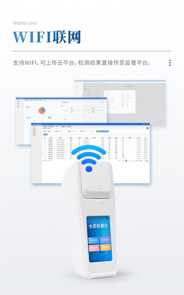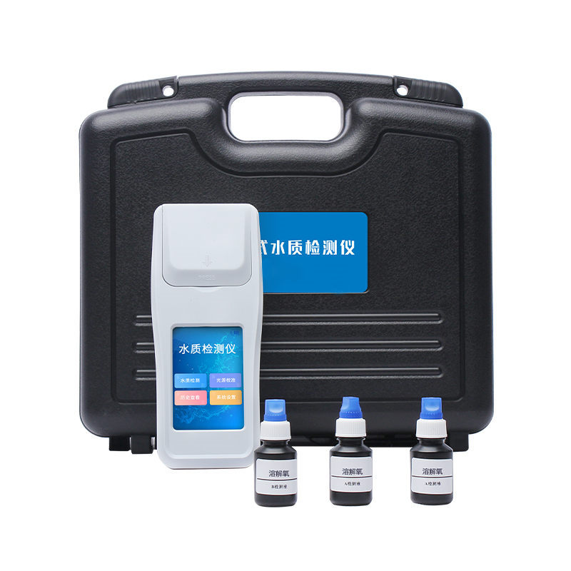 水质溶解氧测定仪是一款适用于工业污水、水产养殖、河流监测、游泳场馆等领域的检测仪,配合快速显色检测试剂,可“快速、简单、准确、稳定”进行测量,拥有精美的外观造型,简单的操作界面,准确的检测系统,帮助用户获得精细的数据,可更准确、有效的分析水体状况。 应用行业: 适用于纯净水厂、自来水厂、生活污水处理厂、工业污水、水产养殖、河流监测、游泳场馆、水源保护、生产监测、科研实验等。 仪器特点: ①安卓智能系统,操作更佳简便快捷; ②配置云监控平台,检测结果可直接无线传至平台,进行水质长短期分析,辅助管理。 ③内置操作流程、操作简单、无需培训、直接上手; ④检测速度更快,现场读取数据; ⑥便携式体积小,重量轻,方便户外检测; ⑦外形小巧美观,工作稳定免维护,具有较好的性价比; ⑧采用进口冷光源,光学性能稳定,寿命长达10万小时; ⑨交直流两用,内置充电锂电池,环保耐用可支持连续室内外工作。 技术指标: 检测项目:水体溶解氧 测量标准:GB7489-87 测量范围:1~12mg/L 测量方式:光电比色 重复性:<0.5% 稳定性:<0.5% 波长选择:自动 操作系统:安卓智能操作系统 显示屏幕:3.5寸彩色液晶触摸屏 灵敏度(吸光度):0.001 使用环境:温度0~50℃,湿度0~90% 数据存储:80000条以上 通讯:Type-C、WIFI、热点、蓝牙 电池:5600mAh锂电池 连续工作时间:8小时 供电电压:5V/DC直流 外形尺寸:190*77*72mm 主机重量:325g 支持语言:简体中文或英文