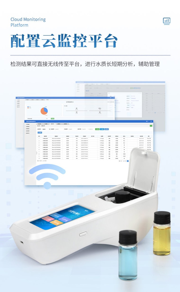 产品概述: 水质总硬度检测仪可简单快速测试水质中总硬度浓度值。利用比色法原理配合总硬度检测试剂快速准确测试水中总硬度含量。 应用行业: 可以广泛应用于电力行业、工业用水、自来水厂、生活饮用水、石油化工、农业灌溉、饮料食品制造业等行业。 仪器特点: ①安卓智能系统,操作更佳简便快捷; ②配置云监控平台,检测结果可直接无线传至平台,进行水质长短期分析,辅助管理。 ③内置操作流程、操作简单、无需培训、直接上手; ④检测速度更快,现场读取数据; ⑥便携式体积小,重量轻,方便户外检测; ⑦外形小巧美观,工作稳定免维护,具有较好的性价比; ⑧采用进口冷光源,光学性能稳定,寿命长达10万小时; ⑨交直流两用,内置充电锂电池,环保耐用可支持连续室内外工作。 参数指标: 检测项目:水体总硬度; 测量范围:4~200mg/L,20~1000mg/L(以CaCO3计); 测量方式:分光光度法; 检测时间:<3min(含反应时间); 重复性:<0.5%; 稳定性:<0.5%; 分辨率:0.01mg/L; 波长选择:自动; 操作系统:安卓智能操作系统; 显示屏幕:3.5寸彩色液晶触摸屏; 灵敏度(吸光度):0.001; 使用环境:温度0~50℃,湿度0~90%; 数据存储:80000条以上; 通讯:Type-C、WIFI、热点、蓝牙; 电池:5600mAh锂电池; 连续工作时间:8小时; 供电电压:5V/DC直流; 外形尺寸:190*77*72mm 主机重量:325g 支持语言:简体中文或英文;