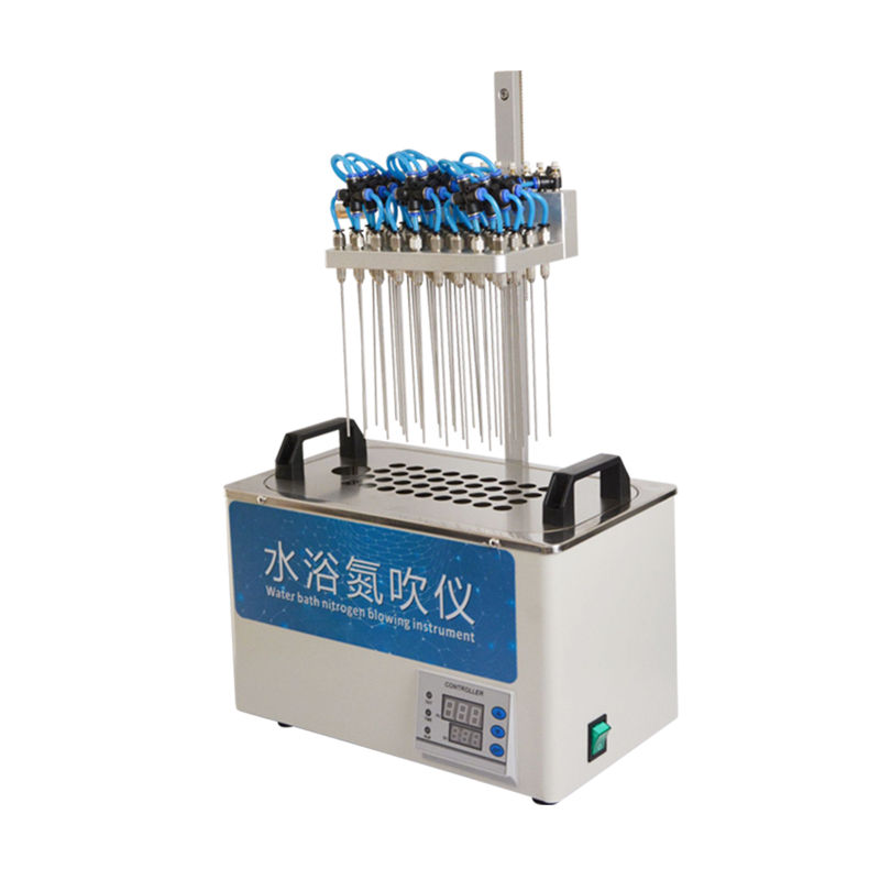 水浴样品浓缩仪采用吹扫捕集技术,同时可对样品进行控温加热,利用氮气等惰性气体快速、可控、连续地吹到样品表面来达到样品溶液快速无氧浓缩。该方法具有省时、便捷、准确的特点。广泛用于食品安全、医药、农药残留检测、临床药代等领域。 产品特点: 1、分配室上各气针通道可组合使用或单独使用,每一路气针均可单独开关。分配室的高度可视需要调节。 2、每一路气体流量可单独进行调节,克服了不可调氮吹仪各气路气流量大小不一的弱点。 3、数字温控器,双数字显示. 4、可能与溶剂接触的部件均采用不锈钢材料、合金铝并表面进行塑料喷涂,使用寿命长且清洁方便。 5、整机可放入通风橱中使用。 6、一般标配的加热块规格为孔径∮16mm。 技术参数