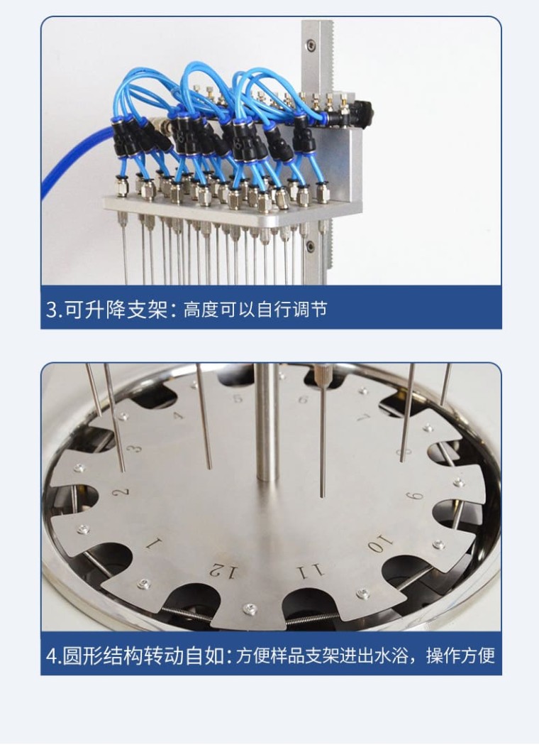 氮气吹扫装置采用吹扫捕集技术,同时可对样品进行控温加热,利用氮气等惰性气体快速、可控、连续地吹到样品表面来达到样品溶液快速无氧浓缩。该方法具有省时、便捷、准确的特点。广泛用于食品安全、医药、农药残留检测、临床药代等领域。 产品特点: 1、分配室上各气针通道可组合使用或单独使用,每一路气针均可单独开关。分配室的高度可视需要调节。 2、每一路气体流量可单独进行调节,克服了不可调氮吹仪各气路气流量大小不一的弱点。 3、数字温控器,双数字显示. 4、可能与溶剂接触的部件均采用不锈钢材料、合金铝并表面进行塑料喷涂,使用寿命长且清洁方便。 5、整机可放入通风橱中使用。 6、一般标配的加热块规格为孔径∮16mm。 技术参数