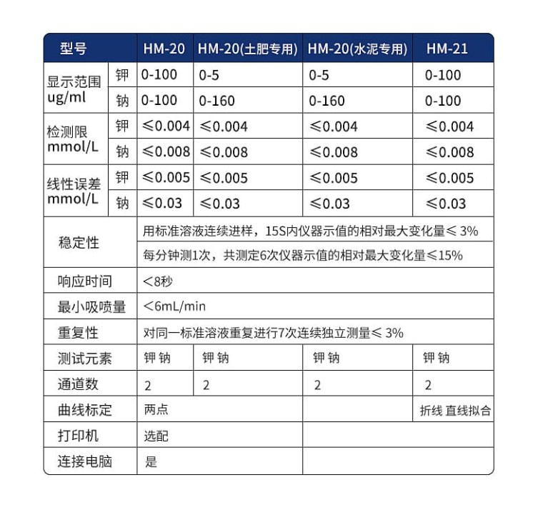 | 检测限mmol/L | 钾 | ≤0.004 | ≤0.004 | ≤0.004 | ≤0.004 | ≤0.004 | ≤0.004 | ≤0.004 |