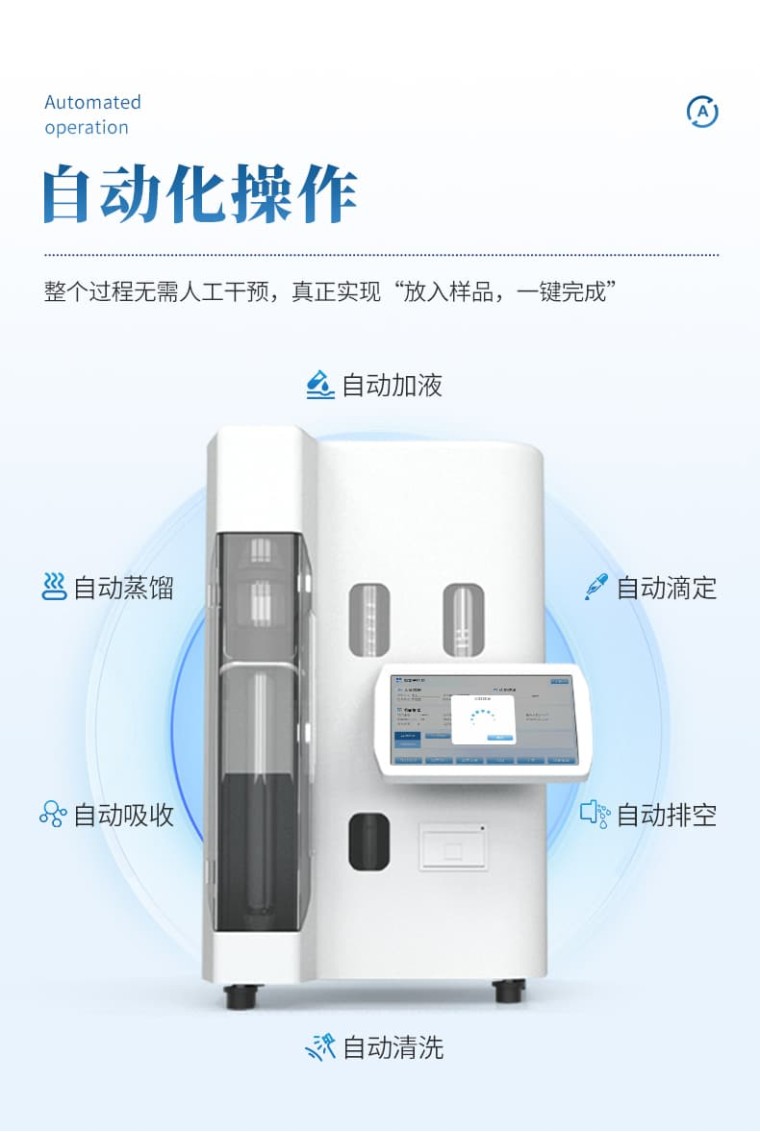 土壤阳离子交换量测定仪是一种专门用于测量土壤阳离子交换量(CEC:土壤胶体能够吸附各种阳离子的总量)的专业设备。利用电化学原理来工作,通过向土壤样品施加一定条件下的溶液,并测量土壤颗粒表面吸收的阳离子与溶液中的阳离子进行交换的能力。 设备原理: 依据《森林土壤阳离子交换量的测定》(LYT 1243-1999)。用1mol/L的乙酸铵溶液反复处理土壤,使土壤成为铵离子饱和土,过量的乙酸铵用95%乙醇洗去,然后加氧化镁,用定氮蒸馏的方法进行蒸馏。蒸馏出的氨用硼酸溶液吸收,以标准酸液滴定,根据铵离子的量计算土壤阳离子交换量。 设备特点: 1、10.1寸触摸屏,Android10系统。 2、具有wifi联网功能,检测结果可直接上传监管平台。 3、高容量16G存储容量,检测结果存储500万条。 4、检测结果为Excel表格,直接拷贝到U盘。 检测结果可批量打印,批量上传。 5、高速热敏打印机,检测完成自动打印检测报告。 6、程序控制冷凝水开启关闭,节约用水量。 7、冷凝水流速监测,低流速报警。 8、蒸发器水位,温度,压力等多重防护。 9、采用强耐腐蚀器件。 10、自动排废,清洗。 设备参数: 1、测量范围:0.1~240.0mg氮 2、样品重量:固体≤8.0g,液体≤30.0ml 3、滴定精度:≤0.001μL/步、最小滴定体积:0.5uL/步 4、滴定方式:静态滴定 5、准确度:示值误差≤1% 6、重 复 性:相对标准偏差≤0.5% 7、测定速度:3~10min/样品(消解好的样品液) 8、功 率:≤1500W 9、重量:19Kg 10、尺寸:405×465×690(mm) 11、环境温度:10-35℃ 12、环境湿度:相对湿度不大于85% 13、工作电压:220V 50HZ