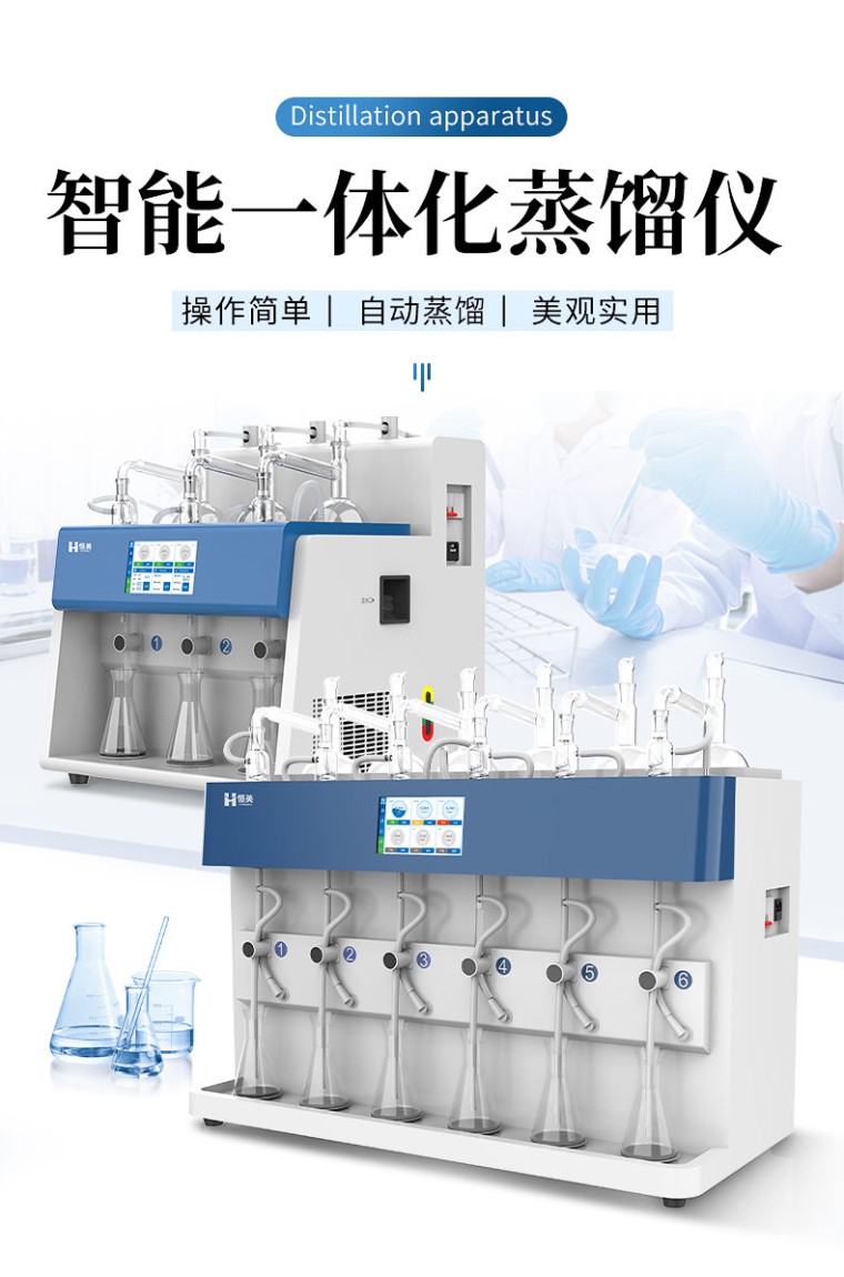 一、产品简介: 多功能蒸馏器是一款专为现代实验室设计的智能、高效的高科技产品,旨在通过高度自动化和智能化的操作,显著提升实验效率与数据准确性。该蒸馏仪集成了先进的冷却水循环技术、独立多通道控制、以及7寸液晶触摸屏控制、自动清洗、自动气密检查、反吹、远程OTA系统升级等多项创新特性,为用户提供了一站式的蒸馏解决方案。 二、产品特点: 1、自动化程度高:内置冷却水循环机,实现全自动化操作,提高实验效率与准确性。 2、多通道独立控制:3个加热单元各自独立,配备防倒吸、防过量蒸馏及防干烧保护。 3、智能触控:7寸液晶触摸屏,支持自定义保存最多1000种蒸馏方法,内置18种国标方法。 4、精准控制:采用高效陶瓷远红外加热,具备时间与重量双重终点控制,确保蒸馏精度达0.1ml。 5、安全可靠:集成自动清洗、自动气密检查、反吹等功能,确保设备长期稳定运行。 6、操作简便:一键启动,支持远程OTA系统升级,满足不同用户的使用需求。 三、技术参数:
