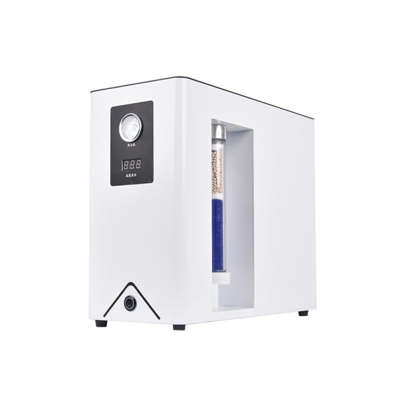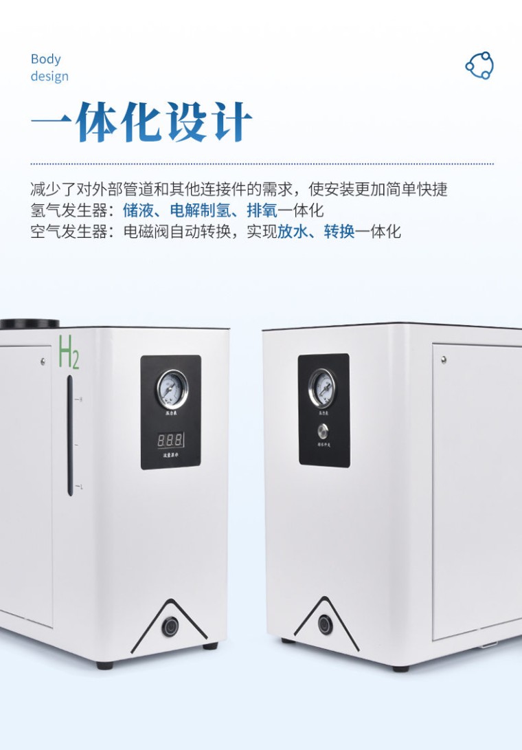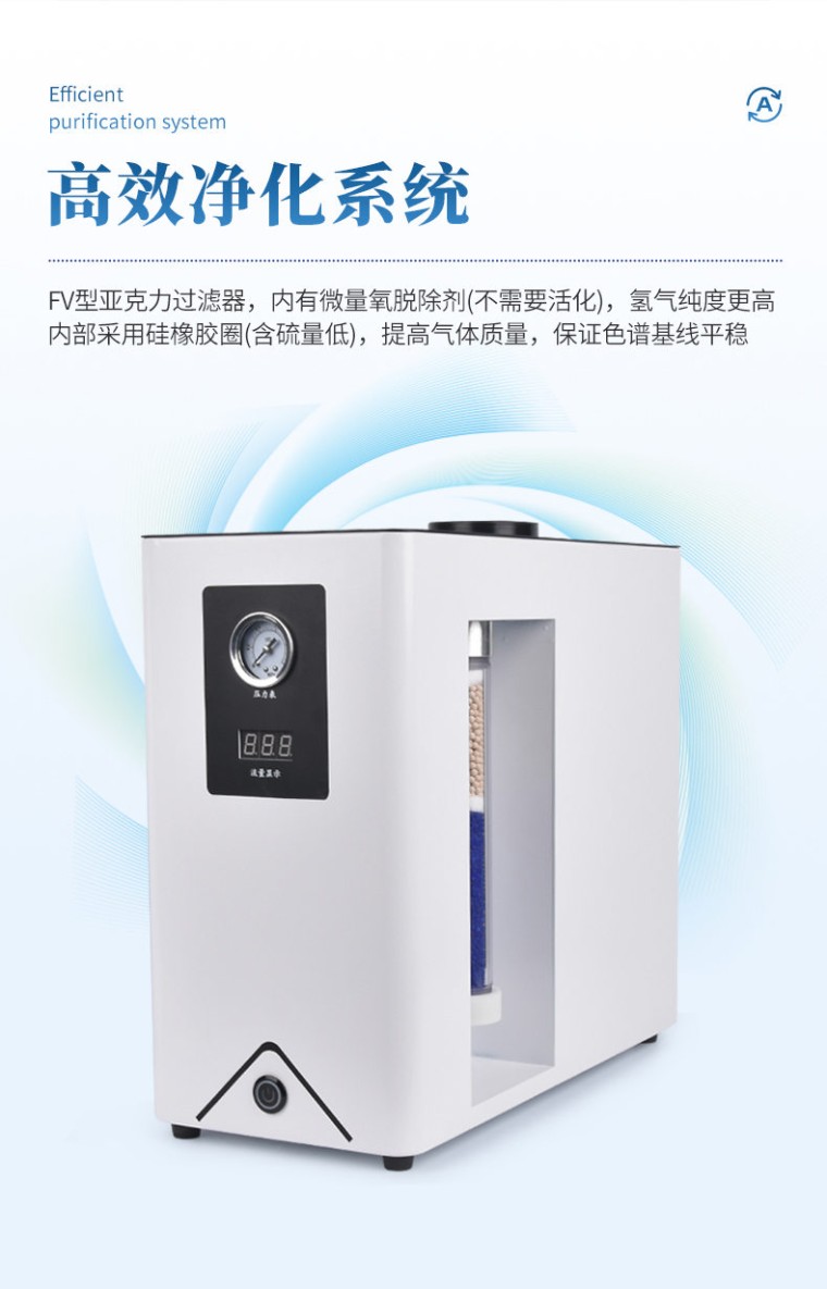 仪器特点: 1、压力、流量自动显示,自动恒压、恒流、氢气流量可根据用量实现全自动调节。 2、FV型亚克力过滤器,内有微量氧脱除剂(不需要活化),氢气纯度更高;仪器内部采用硅橡胶圈(含硫量低),有效提高气体质量,保证色谱基线平稳。 3、储液、电解制氢、排氧一体化,池温低,寿命长久。 4、配有安全装置,灵敏可靠,自动防返碱。 技术参数: 1、氢气纯度: 99.999% 2、氢气流量: 0-320ml/min 3、输出压力: 0-0.4Mpa 4、压力稳定性:<0.001Mpa 5、供电电源: 220V±10% 50Hz 6、消耗功率: 120W 7、外形尺寸: 450*200*400mm 8、净重: 约14Kg