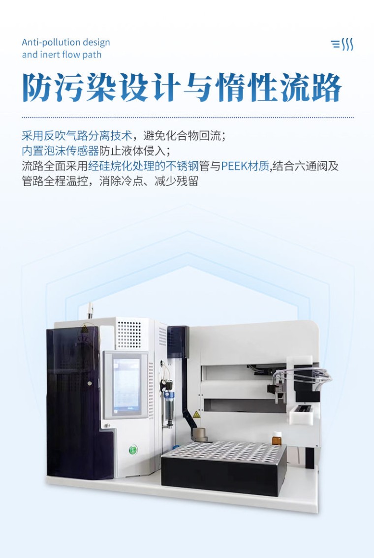 一、概述 自动吹扫捕集仪是一款多工位固液一体全自动吹扫捕集仪。支持液体样品自动精确取样到吹扫瓶中进行吹扫捕集,也支持对固体样品自动加入蒸馏水振荡混合直接进行吹扫捕集。 二、适用标准 •GBT5750-2023生活饮用水标准检验方法,测定有机物指标 •HJ605-2011土壤和沉积物挥发性有机物的测定,吹扫捕集/气相色谱-质谱法 •HJ639-2012水质挥发性有机物的测定,吹扫捕集/气相色谱-质谱法 •HJ686-2014水质挥发性有机物的测定,吹扫捕集/气相色谱-质谱法 •HJ735-2015土壤和沉积物挥发性卤代烃的测定,吹扫捕集/气相色谱-质谱法 •HJ788-2016水质中乙腈的测定,吹扫捕集/气相色谱法 三、应用领域 通过与GC或GC/MS的联用,可以广泛应用于环境分析,如饮用水、废水、土壤中的有机污染物分析,也可用于食品中挥发物(如气味成分)的分析等。 四、主要功能及特点 1、通用性能强:可与任意品牌气相色谱仪(GC)和(GC-MS)联用; 2、操作简便,自动化程度高:只需将样品瓶放到样品盘中,其他操作软件完成,所以实验重复性好;主机配备超大触摸液晶屏,界面信息丰富,全程跟踪温度、操作命令; 3、冷阱采用风冷,进口填料的捕集管在室温状态下,(无需将冷阱温度降至零下)即可吸附标准所要求的全部挥发性有机物,有效降低水气影响、降低设备功耗,同时保证优越的吸附性能; 4、捕集管升温采用缠绕式电阻加热,升温速率>3000℃/min; 5、可加装内置泡沫传感器,检测吹扫管内泡沫,防止污染样品的途径,保护整个分析系统; 6、用户可自定义取样针和吹扫管的清洗次数; 7、固体样品瓶可加热,可直接注入蒸馏水振荡混合吹扫; 8、捕集管与吹扫管反吹气体分离,减少样品间的交叉污染,在反吹循环中,从捕集阱中吹出的化合物不会流进吹扫管中; 9、除水阱在吹扫端去除水汽,极大减少水蒸气对GC和GC/MS的影响; 10、样品管路采用PEEK材料和硅烷化惰性处理不锈钢管,减少污染残留; 11、所有管路和六通阀可控温加热,消除系统冷点,减少样品损失; 12、提供同步接口,在进样的同时可以同时启动色谱和工作站; 13、具备开机自检、周期自检功能,有故障报警和提示,具备温度过载保护功能,漏电保护功能,提高了仪器使用的安全系数; 五、性能指标 1、样品位:44位,40mlVOA样品瓶; 2、捕集管解吸温度:150~400℃,升温速率>3000℃/min; 3、管路加热温度:室温~220℃,步长1℃; 4、阀进样系统温度及控制范围:室温~220℃,步长1℃; 5、吹扫管温度:室温~100℃,步长1℃; 6、除水器加热温度:室温~240℃; 7、清洗蒸馏水温度:室温~90℃,步长1℃; 8、固体样品瓶加热:室温~100℃,步长1℃; 9、固体样品混合:5ml蒸馏水,振荡混合; 10、玻璃吹扫管:5ml吹扫管; 11、捕集管:U型钝化捕集管; 12、吹扫流量:10~150ml/min; 13、定时范围:1s~100min; 14、定时误差:<0.1%; 15、气路耐压:>0.4MPa; 16、同步信号输出:2路开关量,联动开关时间为1~2秒; 17、电源:AC220V50Hz; 18、功率:<800W; 19、仪器尺寸:570mm*730mm*510mm; 六、环境适应性 1、反吹载气压力:≤0.4MPa; 2、环境温度:5~35℃; 3、相对湿度:≤85%;