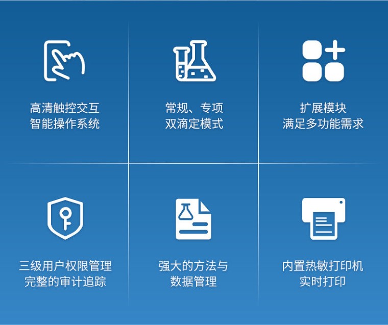 一、仪器简介 本系列全自动电位滴定仪是一款集高精度、智能化与模块化设计于一体的精密分析仪器。核心平台支持酸碱、氧化还原、沉淀、配位等基本滴定模式,并扩展永停滴定高级检测模块,真正实现按需配置、一机多用。 仪器采用先进的Android 10智能操作系统与7英寸高清触摸屏,操作直观流畅。核心性能**,滴定分析重复性≤0.2%,支持电位、pH及温度等多参数实时监测与补偿。仪器内置专业的常规滴定与专项滴定双模式,既可灵活满足研发需求,又能高效完成标准检测,直接输出样品含量结果。凭借高精度流体控制系统、海量数据存储、完备的审计追踪功能以及多种数据接口,本系列仪器成为实验室质量控制和科学研究的高效分析平台。 二、检测原理 全自动电位滴定仪的检测基于溶液电化学参数在滴定过程中的变化,通过高精度传感器实时监测并智能判断终点,实现自动化定量分析。 电位滴定是仪器的基本检测方式。在滴定过程中,指示电极与参比电极之间的电位差(或pH值)随滴定剂的加入而发生改变。仪器以0.1 mV(或0.01 pH)的高分辨率连续采集信号,绘制电位-体积曲线,并通过智能算法自动识别曲线的突跃点或拐点,从而精确判定滴定终点,适用于酸碱、氧化还原、沉淀和配位等四大类滴定反应。 永停滴定采用双铂电极系统,在外加微小恒定极化电压下,监测流过电极对的电流变化。在化学计量点附近,可逆电对的生成或消失会导致电流发生突变,仪器以此作为终点指示信号。该方法灵敏度高,特别适用于以碘量法、亚硝酸钠法等为基础的容量分析。 仪器通过集成上述传感器与智能控制系统,自动完成精密加液、信号采集、数据处理与终点判断,确保了检测过程的高准确性、高重复性与操作简便性。 三、参考标准 JJG 814-2015 《自动电位滴定仪检定规程》 GB/T 29252-2012 《实验室仪器和设备质量检验规则》 GB 4793.1-2007 《测量、控制和实验室用电气设备的安全要求 第1部分:通用要求》 四、应用范围 全自动电位滴定仪凭借其全面的滴定模块与高精度测量性能,广泛应用于多个行业的质量控制和科学研究领域。在食品安全领域,它可用于检测食用油酸价、过氧化值,酱油、食醋中的氨基酸态氮,以及各类食品的酸度、碱度等。在环境监测方面,适用于水质分析,如化学需氧量(COD)、氯离子、氨氮等参数的测定。制药与化妆品行业可用于原料药含量测定、溶液pH与电导率监控及清洁验证。石油化工领域则涉及油品酸值、碱值、硫含量以及化工原料的纯度分析。此外,该仪器在高等院校、科研院所的化学教学与实验研究中,同样是一款可靠的分析工具,能够满足从基础滴定到复杂体系研究的多种需求,为用户提供准确、高效且灵活的自动化分析解决方案。 五、功能特点 1、模块化功能配置:提供从基础滴定到集成永停滴定及专项检测的功能配置,用户可根据实际分析需求选择,性价比高,灵活性强。 2、智能安卓操作系统与触控交互:全系列搭载Android 10系统与7英寸高清电容触控屏,提供直观流畅的图形化操作体验。 3、高精度与高重复性:滴定分析重复性≤0.2%,终点判断准确可靠,确保分析结果的高可信度。 4、精密一体化流体系统:采用阀门滴定管一体化设计,支持10 mL/20 mL滴定管快速更换;管路耐酸碱、耐有机溶剂腐蚀,保障长期运行的稳定性。 5.★双滴定模式: 常规滴定模式:用户可自定义滴定参数,直接测定溶液中待测物的浓度,满足研发与未知样品分析等灵活需求。 专项滴定模式:支持用户根据国家标准、行业规范或内部方法,创建、保存并调用专属检测方法,实现“一键式”标准分析,直接输出样品含量。 6、多种终点检测方式: 支持电位与pH滴定,扩展支持永停滴定。提供动态、等量、预设终点及手动等多种滴定模式。 7.★强大的方法与数据管理:支持滴定方法的创建、编辑、存储与快速调用;内置物质库与自定义计算公式;本地可存储高达10万条数据,完整记录滴定曲线。 8、完备的数据完整性功能:支持三级用户权限管理与完整的审计追踪,符合GLP/GMP等实验室质量管理规范要求。 9、便捷的数据输出与连接:内置热敏打印机,并配备USB、Wi-Fi、以太网多种接口,支持数据即时打印、导出及上传至LIMS系统。 10、良好的扩展性:提供标准通信接口,可连接计算机软件或选配自动进样器,实现批量样品自动分析。 11、系统可靠性与维护便捷:具备断电保护功能,防止数据丢失;可设置系统自诊断与告警;软件可通过U盘或网络升级,便于维护与功能拓展。 12、多语言可设置与人性化设计:可设置中英文等多语言界面切换,并配备详细的操作帮助与教学视频,降低使用门槛。 六、技术参数 1、通用滴定性能 (1)滴定分析重复性:≤ 0.2% (2)滴定分析误差:≤ ±1.5% (3)10 mL滴定管: 1)滴定容量精度:±5 μL 2)滴定容量误差:10 μL/10 mL (4)20mL滴定管: 1)滴定容量精度:±10 μL 2)滴定容量误差:20 μL/10 mL 2、通用测量性能 (1)电位测量: 1)测量范围:-2000 mV ~ +2000 mV 2)分辨率:0.1 mV 3)基本误差:±0.25‰ FS 4)稳定性:±0.3 mV/3 h (2)pH测量: 1)测量范围:0 ~ 14 pH 2)分辨率:0.01 pH 3)基本误差:±0.01 pH (3)温度测量: 1)测量范围:-5 ~ 105 ℃ 2)分辨率:0.1 ℃ 3)基本误差:±0.2 ℃ (4)永停测量: 1)极化电压:30 mV、50 mV、100 mV 2)极化电压误差:±1 mV 3)极化电流范围:0.00 μA ~ 200 μA 4)极化电流误差:±1.0% FS 3、通用系统与物理规格 (1)操作