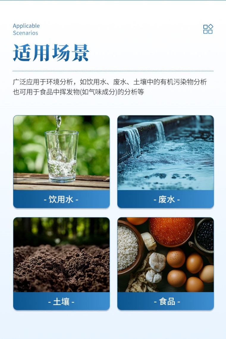 一、概述 全自动固液一体吹扫捕集仪是一款多工位固液一体全自动吹扫捕集仪。支持液体样品自动精确取样到吹扫瓶中进行吹扫捕集,也支持对固体样品自动加入蒸馏水振荡混合直接进行吹扫捕集。 二、适用标准列表 •GBT5750-2023生活饮用水标准检验方法,测定有机物指标 •HJ605-2011土壤和沉积物挥发性有机物的测定,吹扫捕集/气相色谱-质谱法 •HJ639-2012水质挥发性有机物的测定,吹扫捕集/气相色谱-质谱法 •HJ686-2014水质挥发性有机物的测定,吹扫捕集/气相色谱-质谱法 •HJ735-2015土壤和沉积物挥发性卤代烃的测定,吹扫捕集/气相色谱-质谱法 •HJ788-2016水质中乙腈的测定,吹扫捕集/气相色谱法 三、应用领域 通过与GC或GC/MS的联用,可以广泛应用于环境分析,如饮用水、废水、土壤中的有机污染物分析,也可用于食品中挥发物(如气味成分)的分析等。 四、主要功能及特点 1、通用性能强:可与任意品牌气相色谱仪(GC)和(GC-MS)联用; 2、操作简便,自动化程度高:只需将样品瓶放到样品盘中,其他操作软件完成,所以实验重复性好;主机配备超大触摸液晶屏,界面信息丰富,全程跟踪温度、操作命令; 3、冷阱采用风冷,进口填料的捕集管在室温状态下,(无需将冷阱温度降至零下)即可吸附标准所要求的全部挥发性有机物,有效降低水气影响、降低设备功耗,同时保证优越的吸附性能; 4、捕集管升温采用缠绕式电阻加热,升温速率>3000℃/min; 5、可加装内置泡沫传感器,检测吹扫管内泡沫,防止污染样品的途径,保护整个分析系统; 6、用户可自定义取样针和吹扫管的清洗次数; 7、固体样品瓶可加热,可直接注入蒸馏水振荡混合吹扫; 8、捕集管与吹扫管反吹气体分离,减少样品间的交叉污染,在反吹循环中,从捕集阱中吹出的化合物不会流进吹扫管中; 9、除水阱在吹扫端去除水汽,极大减少水蒸气对GC和GC/MS的影响; 10、样品管路采用PEEK材料和硅烷化惰性处理不锈钢管,减少污染残留; 11、所有管路和六通阀可控温加热,消除系统冷点,减少样品损失; 12、提供同步接口,在进样的同时可以同时启动色谱和工作站; 13、具备开机自检、周期自检功能,有故障报警和提示,具备温度过载保护功能,漏电保护功能,提高了仪器使用的安全系数; 五、性能指标 1、样品位:128位,40mlVOA样品瓶; 2、捕集管解吸温度:150~400℃,升温速率>3000℃/min; 3、管路加热温度:室温~220℃,步长1℃; 4、阀进样系统温度及控制范围:室温~220℃,步长1℃; 5、吹扫管温度:室温~100℃,步长1℃; 6、除水器加热温度:室温~240℃; 7、清洗蒸馏水温度:室温~90℃,步长1℃; 8、固体样品瓶加热:室温~100℃,步长1℃; 9、固体样品混合:5ml蒸馏水,振荡混合; 10、玻璃吹扫管:5ml吹扫管; 11、捕集管:U型钝化捕集管; 12、吹扫流量:10~150ml/min; 13、定时范围:1s~100min; 14、定时误差:<0.1%; 15、气路耐压:>0.4MPa; 16、同步信号输出:2路开关量,联动开关时间为1~2秒; 17、电源:AC220V50Hz; 18、功率:<800W; 19、仪器尺寸:570mm*730mm*510mm; 六、环境适应性 1、反吹载气压力:≤0.4MPa; 2、环境温度:5~35℃; 3、相对湿度:≤85%;