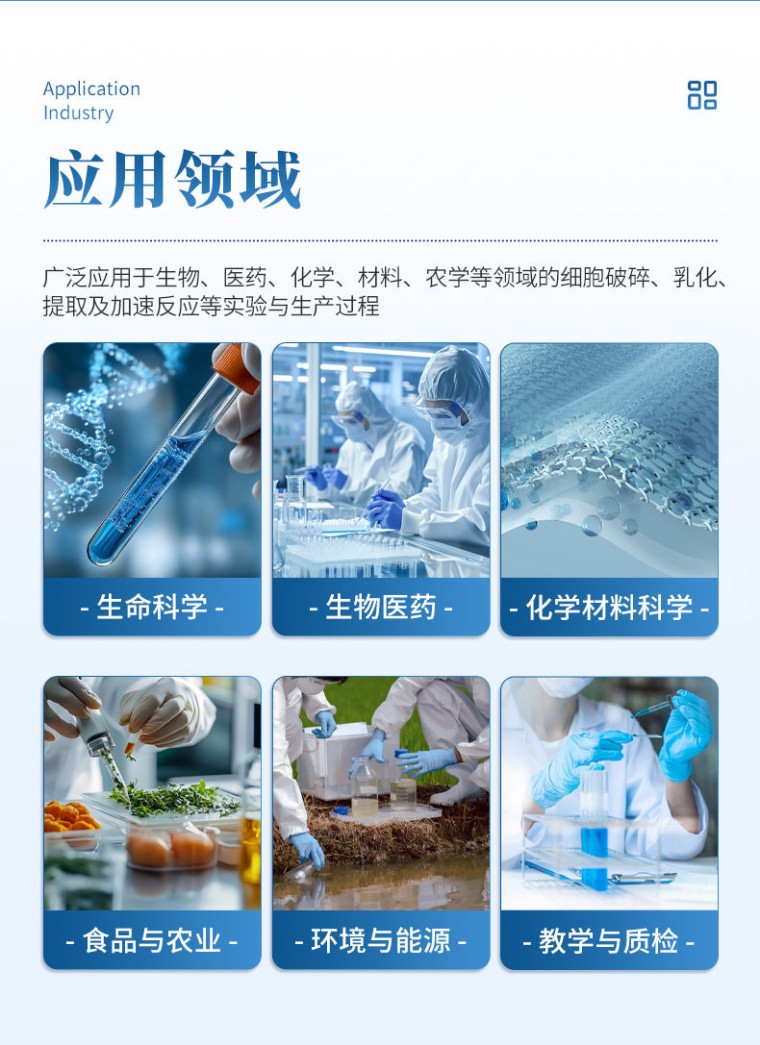 一、产品介绍: 超声波乳化机是一种利用强超声在液体中产生空化效应,对物质进行超声处理的多功能、多用途的仪器,能用于动植物组织、细胞、细菌、芽胞菌种的破碎,同时可用来乳化、分离、分散、匀化、提取、脱气、清洗及加速化学反应等等。 恒美自研自产的超声波乳化机,将隔音箱融入到主机中形成一体化。功能齐全、外观新颖、性能可靠。仪器采用大屏液晶显示;中央微机集中控制,超声输出、间隙时间、超声功率,样品温度监测显示,频率自动跟踪,故障自动报警等功能。适用于生物化学、微生物学、药物化学、表面化学、物理学、动物学、农学、医学、制药等领域的教学、科研及生产。 二、工作原理: 利用超声波在液体中的分散效应,使液体产生空化的作用,从而使液体中的固体颗粒或细胞组织破碎.超声波细胞粉碎机由超声波发生器和换能器二大部分组成。超声波发生器将市电转变成20-25KHz交变电能供给换能器。锆钛酸钡压电振子是换能器的心脏,它随交变电压以20-25KHz频率作伸缩弹性形变,换能器随之作纵向机械振动。振动波通过浸入在生物溶液中的钛合金变幅杆产生空化效应,激发介质里的生物微粒剧烈振动。 三、用途: 超声波破碎仪能用于粉碎动、植物细胞、细菌、牙孢或组织。分散稀土和各类无机矿物粉。 超声波破碎仪是加速化学、生物学、物理学的反应速度和加速液体脱气的理想装置。 超声波破碎仪能配制近乎微米的百分之一大小的乳胶体;匀化“难混溶”的混合液;聚合一些物质,析出另一些物质。 总之,超声波粉碎机能实现提取、粉碎、乳化、匀化、悬浮液、变异、气悬体、加速脱溶、晶化及在电子显微镜下配制各种生物样本之多种功能。 四、产品特点: 1.7英寸医疗级液晶触摸屏,高分辨率,界面直观,操作流畅; 2、一体式结构设计,减少占用实验室使用空间; 3、低噪音金属外壳,高品质隔音材质置于夹层,隔音效果好,工作仓内整洁卫生; 4、采用智能化MCU数字集成电路,支持间隙/连续运行模式; 5、亚克力大视窗,便于清洗、观察; 6、设备配置电动操作平台升降、 LED 照明系统、紫外杀菌功能; 7、设备设置 超声开时间、超声关时间、总时间可精确到0.1秒; 8、具有测试和运行模式并带有暂停或停止功能; 9、具有变幅杆自动匹配、频率自动跟踪、故障自动报警(或保护)等功能; 10、超声探头采用TC4**级钛合金材质,强度高、耐蚀性好、耐热性高; 11、航空级镁铝合金换能器,性能强劲; 12、中英文选择(出厂设置); 13、带有密码保护功能,防止非操作人员违规操作; 14、工作语音报警方式为蜂鸣器报警; 15、高达 256组工程参数储存,实验者可方便配置以及调取参数; 16、后置扩展接口,可扩展手动开关或脚踏开关,实现手动精细控制,也可扩展联动外部设备(如恒温装置、搅拌仪、便携式打印机、上位机等); 五、产品参数: 1、显示:7英寸高清触摸屏 2、超声功率:20-1800W 3、换能器频率范围:20-25KHz 4、破碎容量:0.5--3000ml(需选配相应的变幅杆) 5、单次超声时间:0.1-99.9S 6、单次间隙时间:0-99.9S(0为连续模式) 7、总时间:0.1-999.9M 8、调节方式:功率或PWM(选配) 9、温度传感器:接触式温度传感器 10、超温报警:0~99.9℃ 11、控温范围:1~99.9℃(可选配恒温装置) 12、可选配变幅杆:Φ2、Φ3、Φ6、Φ8、Φ10、Φ12、Φ15、Φ20、Φ25 13、接口:电源接口、USB、7P航空插头 14、电源:220V±5%/50Hz 15、净重:大约19kg 16、仪器尺寸:345mm*350mm*560mm