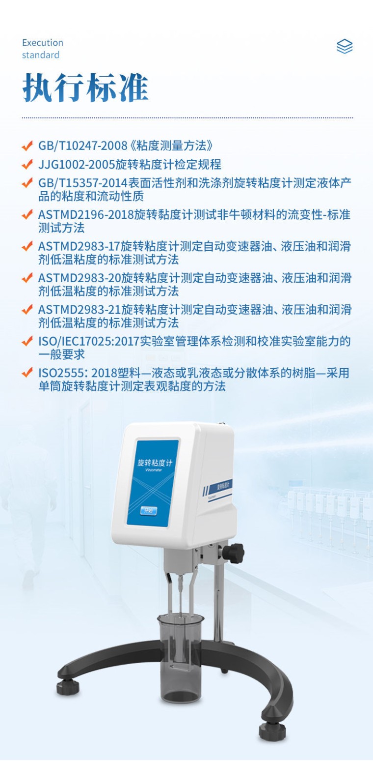 一、产品简介: 微量粘度仪是一种用于测量液体粘度的精密仪器。它通过测量旋转部件在液体中受到的阻力来确定液体的粘度。微量粘度仪广泛应用于化工、食品、医药、石油等行业,用于质量控制、研发和生产过程中的粘度测量。 二、应用范围: 化工行业:用于测量各种化学溶液、涂料、油墨、胶粘剂等的粘度。 食品行业:用于测量酱料、蜂蜜、乳制品、饮料等的粘度。 医药行业:用于测量药液、凝胶、乳剂等的粘度。 石油行业:用于测量润滑油、燃油、沥青等的粘度。 科研领域:用于实验室中的粘度研究和材料特性分析。 三、执行标准: GB/T 10247-2008《粘度测量方法》 JJG 1002-2005 旋转粘度计检定规程 GB/T 15357-2014 表面活性剂和洗涤剂 旋转粘度计测定液体产品的粘度和流动性质 ASTM D2196-2018旋转黏度计测试非牛顿材料的流变性-标准测试方法 ASTM D2983-17旋转粘度计测定自动变速器油、液压油和润滑剂低温粘度的标准测试方法 ASTM D2983-20旋转粘度计测定自动变速器油、液压油和润滑剂低温粘度的标准测试方法 ASTM D2983-21旋转粘度计测定自动变速器油、液压油和润滑剂低温粘度的标准测试方法 ISO/IEC 17025:2017 实验室管理体系检测和校准实验室能力的一般要求 ISO 2555:2018塑料—液态或乳液态或分散体系的树脂—采用单筒旋转黏度计测定表观黏度的方法 四、产品特点: 1. 5英寸高清LCD彩色触摸屏; 2. ★配方存储:将已验证的检测方案系统化归档,支持快速复用与团队协作。 3. ★无级变速:数据更清晰,分析更明确; 4、 采用机械传动,通过手动摇杆实现升降,具有低噪音、便携性强的特点。 5、 具有温度测量功能,判断样品在恒温状态,可以使检测结果更稳定; 6、 可外接恒温装置,使样品处在恒温状态下检测,更稳定更准确。 7、 转矩保护功能:超量程自动保护,并提示用户更换转子或降低转速; 8、 转矩监测功能:智能识别最合适的转子和转速并提示用户; 9、 数据存储:保存实验数据利于结论分析,确保实验可复现; 10、 数据导出:使用U盘导出Excel表; 11、 定时功能:对特殊样品可以做时间段的变化检测; 12、 密码保护功能:通过密码限制人员使用设备; 13. ★打印机:可连接外置打印机(选配); 五、技术参数: 显示:5英寸高清触摸屏; 量程:320-32000万 mpa.s ; 精度:±1%(调平恒温); 重复精度:±0.5%(调平恒温); 标配转子:微量转子; 样品量:9-16mL。 可选配:0#转子; 转速:0.1~200rpm,无级变速; 测温范围:1-99.9℃; 定时功能:0~99h; 配方存储:256条; 数据存储:1024条; 接口:电源接口、温度接口、USB接口、打印口、PC口; 电源输入:DC12V 2A; 净重:5.5kg; 支架重量:3kg; 主机尺寸:117mm*155mm*159mm; 仪器尺寸:37cm*24cm*52cm; 包装尺寸:43cm*36cm*28cm; 支架高度:40cm,支架行程:35cm。