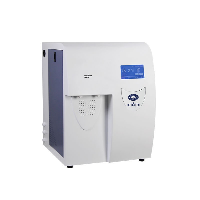 仪器特点: 1.5.1英寸大屏幕液晶中文显示,实时显示运行状态 2、进水温度显示、RO膜、UP水水质显示,实现在线监控 3、采用双泵运行,定期自动循环,时刻保持稳定水质 4、反渗透设计,有效延长超纯水包使用寿命 5、中英文语言选择功能,方便语言使用习惯 6、可任意设定预处理、RO膜、UV灯(UV灯选配)和超纯水包寿命,显示耗材使用和剩余时间 7、可自动启动,关闭循环系统,延长超纯水包寿命 8、耗材到期自动提醒,避免水质下降 9、系统设置密码保护功能,防止未经授权更改数据 10、定时定量取水功能 11、标配一键消毒功能组件,实现RO膜、循环管路、水箱快速消毒,保证系统 极低的系统污染水平 12.RS-232通讯模块,可连接打印机,打印水质报告(选配) 13、全塑外壳,永不生锈 14、双出水:RO出水电导率2~10us/cm、UP出水电阻率18.2MΩ 15、产水量:20L/H 注: 1、进水水质影响出水质量和滤柱的使用寿命; 2、源水水质较差(TDS大于200ppm)时,RO纯水水质会降至10μs/c㎡以上; 3、原水水质TDS>500时,建议常更换前置滤芯扳手一套。