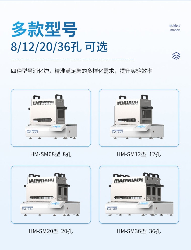 石墨消化炉,具有消解快速、高效、便捷等优点,适用于食品、制药、农业等行业以及高等院校、科研部门对土壤、饲料等样品在化学分析前的消解处理工作,更适合与凯氏定氮仪配套使用。 产品特点 使用5寸彩色触摸屏进行仪器操作,配备安卓操作系统,方便快捷。 采用PID 控温技术,控温精度高,升温速度快, 从室温到450℃仅需30分钟。 分段控温设置,即可单段升温,也可多段升温,设置灵活,仪器将自动按顺序完成。更适于易产生泡沫的样品。 采用优质石墨炉内芯,平均温差较小,样品消解效果一致性好,热传导效率更高。石墨块具有特氟龙涂层,耐腐蚀,延长使用寿命。 技术参数
