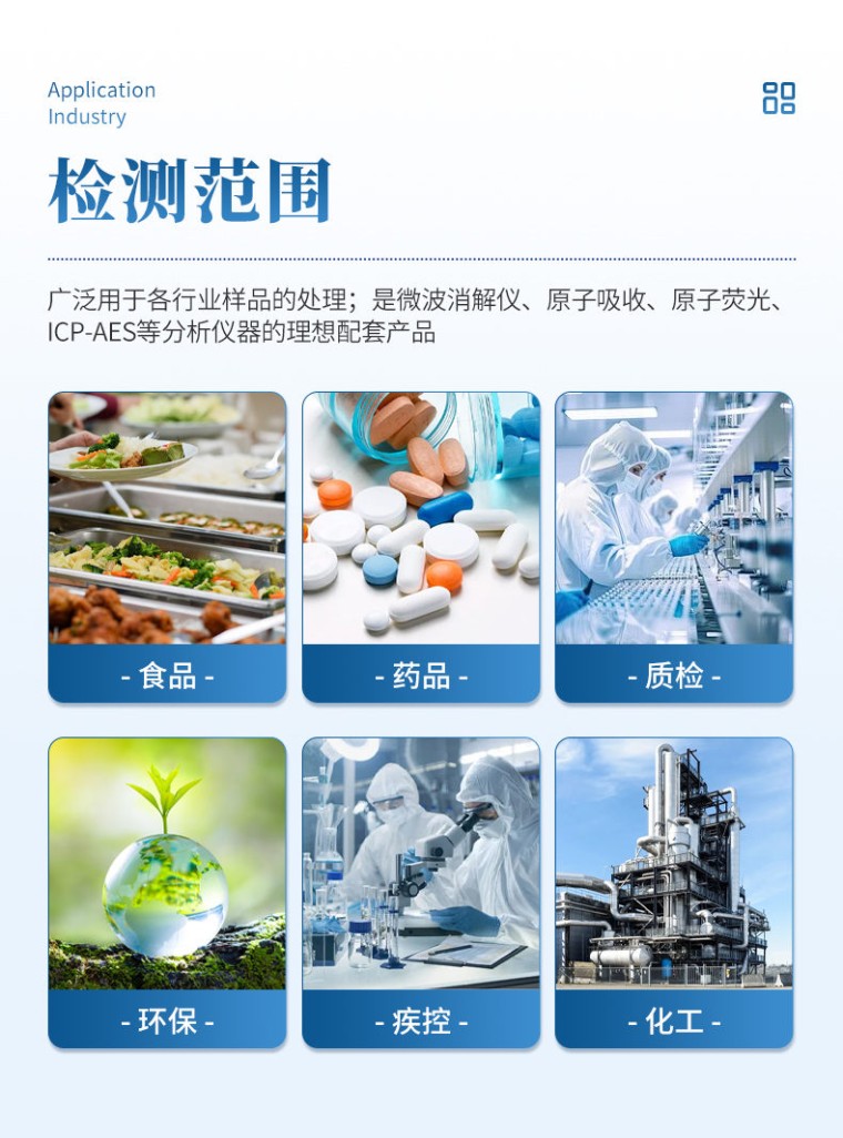 石墨赶酸仪,具有快速、高效、便捷等优点,适用于食品、药品、质检、环保、疾控、化工、高校等行业样品的处理。可用于微波消解的预处理和赶酸处理,是原子吸收、原子荧光、ICP-AES等分析仪器的理想配套产品,更适合与微波消解仪配套使用。 产品特点 使用5寸彩色触摸屏进行仪器操作,配备安卓操作系统,方便快捷。 采用PID 控温技术,控温精度高,升温速度快, 从室温到260℃仅需25分钟。 分段控温设置,即可单段升温,也可多段升温,设置灵活,仪器将自动按顺序完成。更适于易产生泡沫的样品。 采用优质石墨炉内芯,平均温差较小,样品效果一致性好,热传导效率更高。石墨块具有特氟龙涂层,耐腐蚀,延长使用寿命。 技术参数 石墨炉孔:孔径33.5mm,孔深190mm,孔数4×3 控温范围:室温~260℃ 控温精度:±1℃ 控温分段:1~5段 加热方式:石英加热管红外传递 屏幕规格:5寸触控 主机外型尺寸:宽522mm×深371mm×高168mm 使用电源:AC220V、 (50 ± 1)Hz 额定功率:1.6千瓦