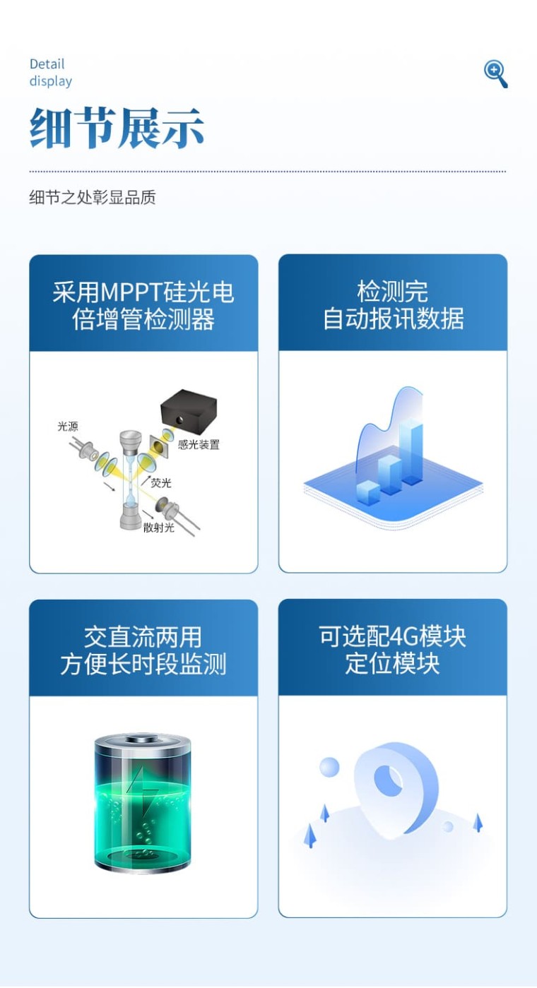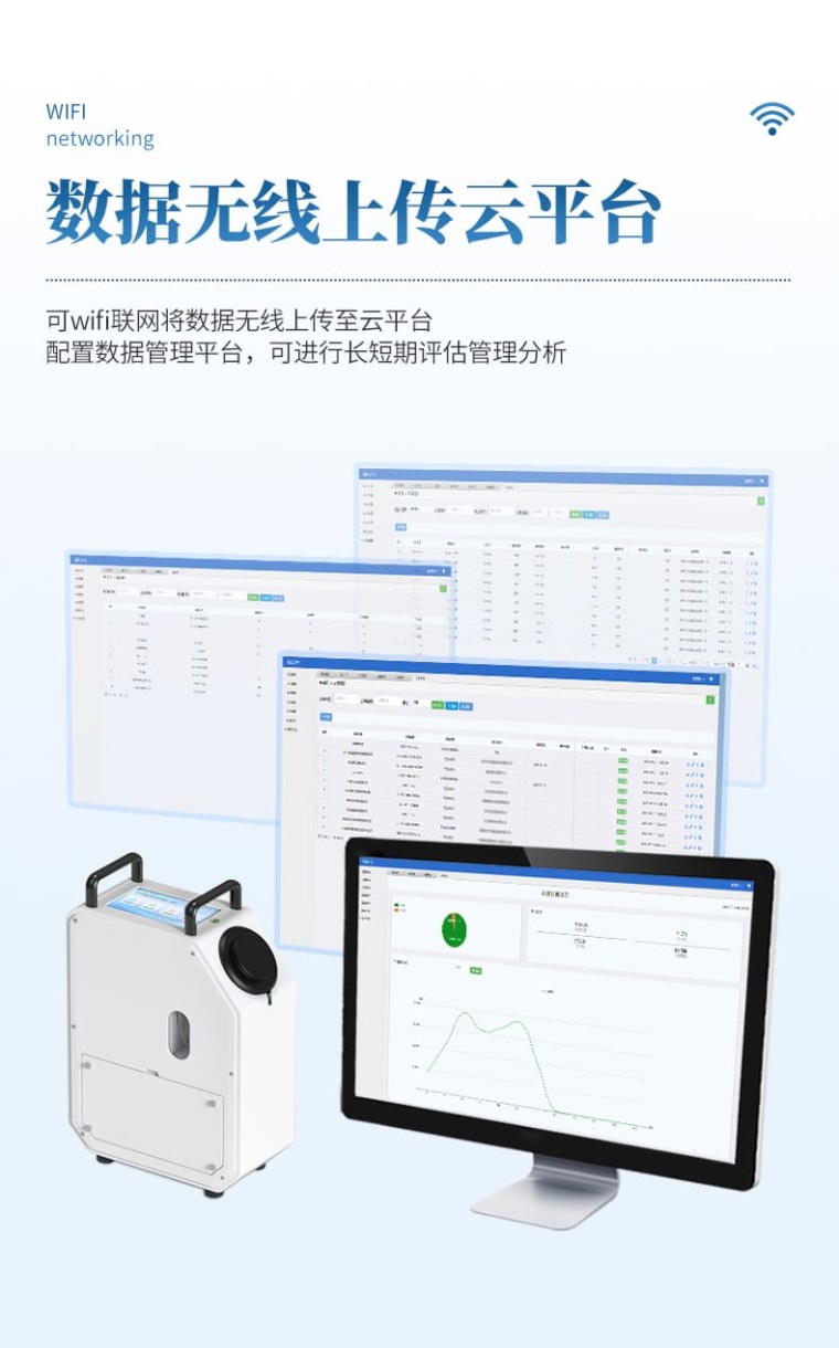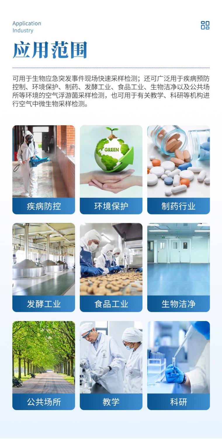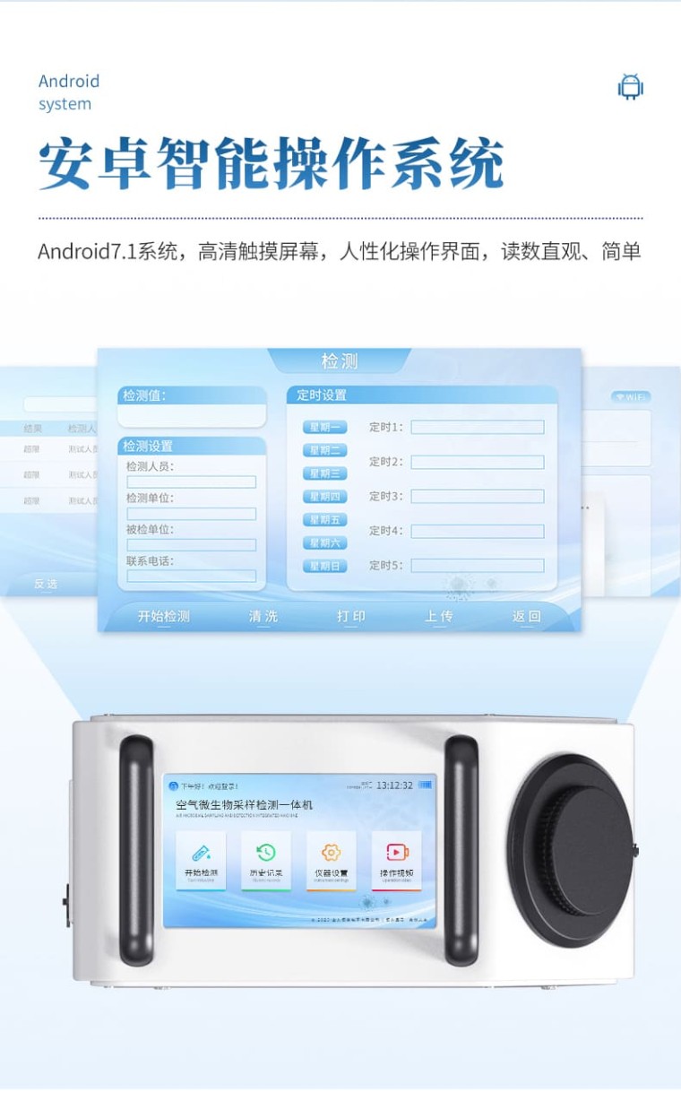 微生物气溶胶检测仪可用于生物应急突发事件现场快速采样检测;还可广泛用于疾病预防控制、环境保护、制药、发酵工业、食品工业、生物洁净以及公共场所等环境的空气浮游菌采样检测,也可用于有关教学、科研等机构进行空气中微生物采样检测。 产品优势 1. 空气微生物采样检测一体机集大流量采集模块、快速荧光检测模块、清洗模块等于一体,实现了全自动无人值守检测(可每天定时多时段检测),省却了人工单独采样,采样完成再转换到实验室检测的过程; 2.安卓系统 RAM2G+ROM16G ; 3.大流量空气采样装置(干壁气旋固气分离原理) 4.采用MPPT硅光电倍增管检测器 5.可每天定时多时段检测; 6.检测完自动报讯数据; 7.可wifi联网将数据无线上传至云平台; 8.配置数据管理平台,可进行长短期评估管理分析; 9.交直流两用,可方便长时段监测,也可方便流动检测; 10.可选配4G模块,定位模块 原理 基于萤火虫发光原理,利用“荧光素酶—荧光素体系”快速检测三磷酸腺苷(ATP)活体微生物体内的ATP含量较为恒定,通过检测发光值来确定ATP含量,从而可确定样品中活体微生物的含量,首先通过大流量空气采样模块将空气中的微生物富集到蒸馏水里面,然后向液体中加入定量的酶液,充分反应后,经过快速荧光检测模块测试相对发光度,根据发光的强度可以测算出对应的微生物含量。 产品参数 系 统: 安卓Android7.1 空气采样流速: 245L/min 空气采样流量:10-750L/min 检测时间:2-180S 检测范围:0-9999999RLUs。 ATP检出限:10-10到10-12mol ATP 温度范围: 18-45度 采集效率: 92% 待机时间: >=10H 平均功耗: 6W 电 源: 12V直流供电 电 池:12V/10000mAH 体 积:337 *163*480mm 重 量:8KG