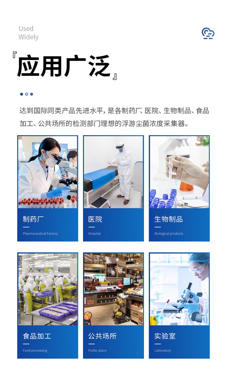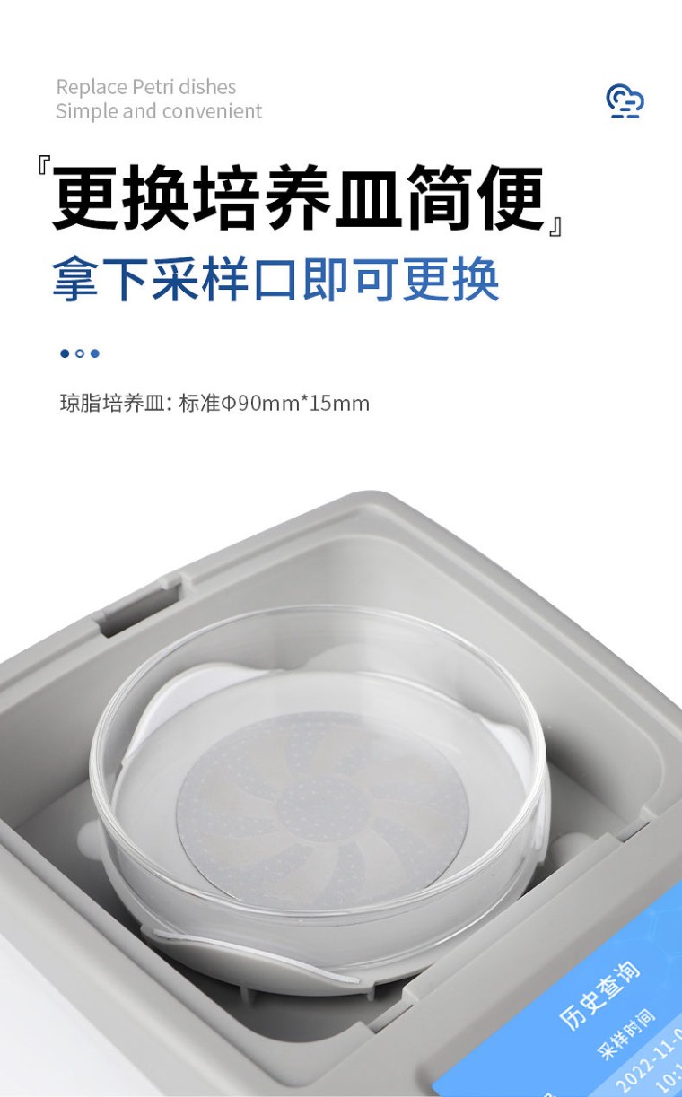 空气浮游菌采样器是一种高效的多孔吸入式尘菌采样器。它根据颗粒撞击原理和等速采样理论设计,采样直接,采样口风速与洁净室内风速基本一致,能更准确地反映洁净室内的微生物浓度。 采样时,带尘菌空气高速通过微孔,被撞击在培养皿内的琼脂表面;采集完成后把琼脂培养皿盖好,这些活体微生物在培养过程中,发生动能再水化过程,高速生长,从而更快得出结果。 本仪器结构独特新颖,分上下两部分,上部分采集口和采样座及气泵,下部分控制器及电池。采样口和外壳采用优质航空铝制造,表面闭孔处理,便于使用前的灭菌消毒。本仪器功能强大,采样量大,收集效率高,性能稳定,操作简便,达到国际同类产品先进水平,是各制药厂、医院、生物制品、食品加工、公共场所的检测部门理想的浮游尘菌浓度采集器。 主要特点: ●新型手持式外观,美观大方,使用方便。 ●彩色触屏控制,操作更加高效快捷。 ●LCD显示采样量,采样时间等参数。 ●可将采样量,采样时间等参数按组储存。 ●更换培养皿简便,拿下采样口即可更换培养皿。 ●带热敏打印机,方便打印数据。 ●带上位机软件,数据可导出电脑,方便历史分析。 ●交直流两用,内置6000mAh大容量锂电池,可连续采样8小时。 ●程序支持中文或英文。 相关标准: 1、GB/T16293-2010医药工业洁净室(区)浮游菌的测试方法; 2、ISO14698-1/2洁净室及相关控制环境的生物污染控制; 3、GMP药品食品生产质量管理规范; 技术参数: 采样流量:100L/min±5% 采样孔撞击风速:12m/s 采样口流速:0.4m/s 在洁净室内等速采样 设定采样量范围:1-9999L可调 琼脂培养皿:标准ɸ 90mm*15mm 屏幕尺寸:3.5寸触摸屏 数据通讯接口:USB 体积:Φ 120*300 重量:1.6kg 尺寸:22×14×25cm 标准配件:采样盖1个,培养皿2个,防尘罩1个,热敏打印纸1卷,电源适配器,说明书,合格证
