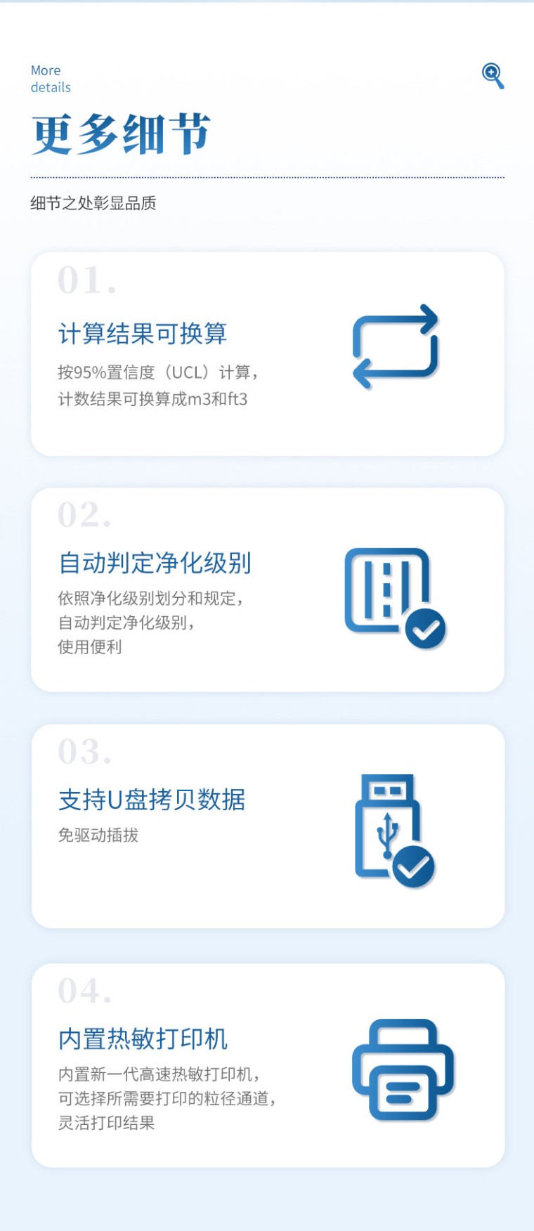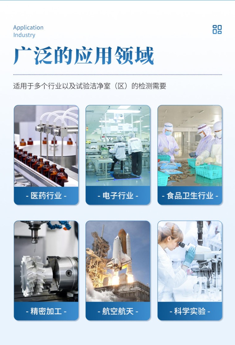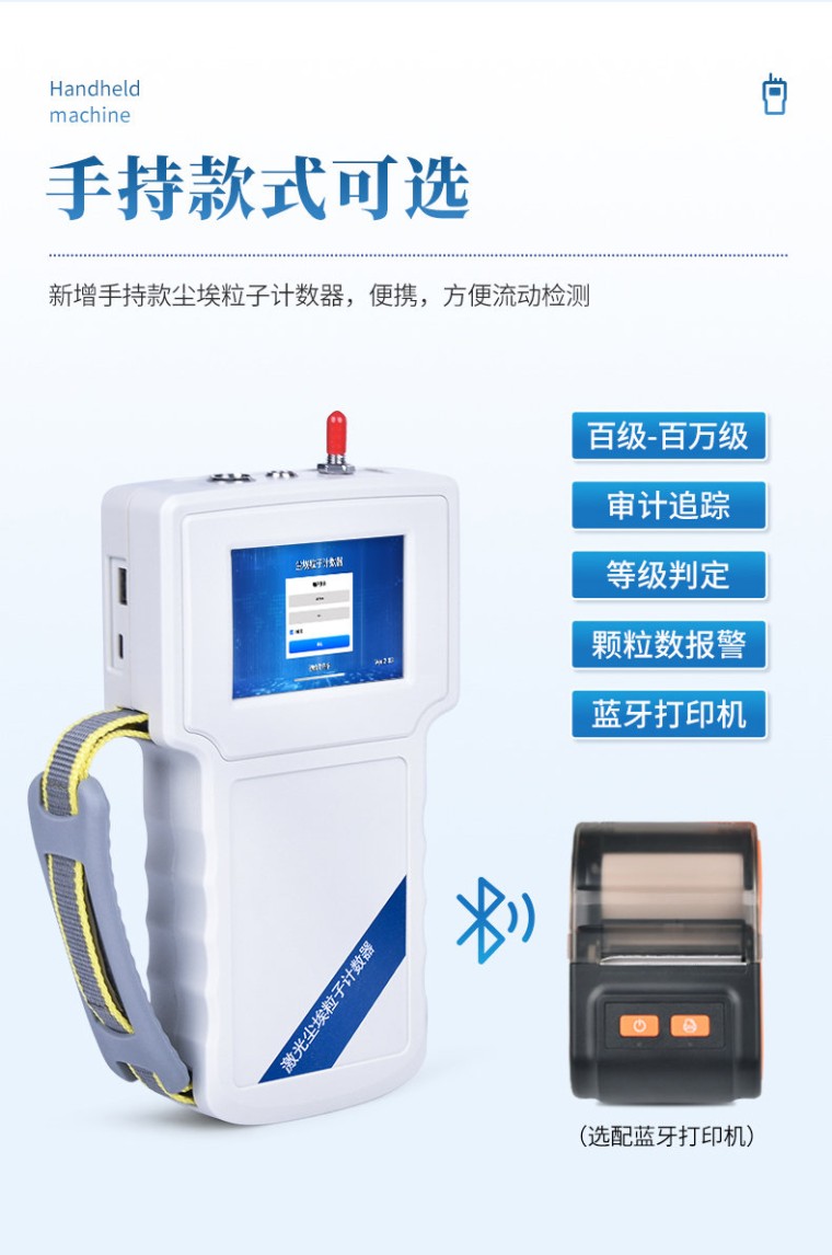 HM-CL2智能尘埃粒子计数器,其置信度测量检定标准按照国标GB/T6167-2007和校准规范JJF1190-2008规定的条件,对净化级别进行自动判断。一次采样可同时测得六个粒径通道的尘埃粒子数,并同时显示六个粒径通道粒子的数目及其变化情况。 适用范围: 满足医药行业(制药厂、药检所、医院手术室等);电子行业(半导体工厂、精密机械的生产加工等);食品卫生行业(乳制品、塑封肉食品、调味食品、农产品等的精加工);过滤器的生产厂家,检验过滤器的质量及效率等;光学、及航空航天等领域的精加工、精密试验所需的洁净室(区)的检测需要。 依据标准: 国家标准:GB/T6167-2007尘埃粒子计数器性能试验方法 洁净度等级判定标准:ISO14644 FS209E ,新版GMP(动态/静态) 校准规范:JJF-1190-2008 仪器特点: 1、安卓系统7.1版本,操作交互体验更好。 2、内置温湿度传感器、环境气压传感器 3、核心部件光散射传感器明显消除腔体的杂散光,信噪比大为提高。从而使测量更准确更可靠。 4、按95%置信度(UCL)计算,计数结果可换算成m3和ft3 5、依照净化级别划分和规定,自动判定净化级别,使用便利。 6、带审计追踪功能,可查询、可追溯、可控制,符合FDA 21CFR PART11规范 7、支持wifi、蓝牙传输,数据可无线上传;同时支持U盘拷贝数据,免驱动插拔。 8、配置监管平台,检测结果可直接无线传至平台,进行洁净度长短期分析,辅助管理。 9、内置新一代高速热敏打印机,可选择所需要打印的粒径通道,灵活打印结果。 10、交直流两用,内置充电锂电池,环保耐用可支持连续采样6小时以上。 11、便捷简易伸缩式云台支架,安装采样操作更加方便。 技术指标: 采样量:2.83L/min (0.1cfm) 六粒径通道:0.3,0.5,1.0,3.0,5.0,10.0(μm) 自净时间:≤10min 粒径分布误差:0.5um 5um ≤±30% 粒子浓度示值误差:0.5um ≤±30% 测量重复相对偏差:≤±10% 使用环境:工作环境15~35℃, 10-85%RH 采样周期:可从1秒至99min开始任意设定 采样延时:≤99s 测量间隔:≤999s 采样方式:单次、≤99次(自定)、连续 报警级别:Class100~Class300,000级(FED209E 标准);或5~9级(ISO14464-1标准) 光源:进口半导体激光二极管(寿命大于30000小时) 屏幕显示方式:7寸彩色触摸屏 充电时间:2小时 设计工作时间:8小时 平均功率:7.5W 内置电池:74Wh(16.8V/5Ah) 充电器:50W(16.8V/3A)