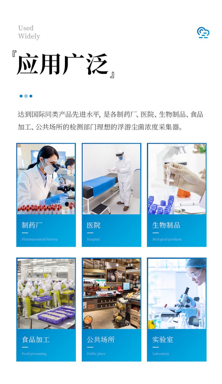 产品简介: 浮游细菌采样器是新研发的一种高效的多孔吸入式尘菌采样器。它根据颗粒撞击原理和等速采样理论设计,采样直接,采样口风速与洁净室内风速基本一致,能更准确地反映洁净室内的微生物浓度。采样时,带尘菌空气高速通过微孔,被撞击在培养皿内的琼脂表面;这些活体微生物在培养过程中,发生动态再水化过程,高速生长,从而更快得出结果;仪器支持历史数据记录,数据U盘导出方便数据查看。 浮游细菌采样器具有采样量大、性能稳定、操作简便等特点,达到国际同类产品先进水平,是各制药厂、医院、生物制品、食品加工、公共场所等的检测部门的浮尘菌浓度采样仪器。 符合标准: 1、GMP药品食品生产质量管理规范 2、ISO14698-1/2洁净室及相关控制环境的生物污染控制 3、GB/T16293-2010医药工业洁净室(区)浮游菌的测试方法 主要特点: 1、采集口为无数微孔,减少了尘菌重叠,降低了微生物计数错误; 2、可编程,采样量可以从1-9999L(可调)0.001-9.999m³任意设定; 3、LCD显示采样量,采样时间等参数; 4、可将采样量,采样时间等参数按页储存,可储存256页数据; 5、造型独特,使用方便; 6、更换培养皿简便,拿下采集口即可更换培养皿(使用标准通用培养皿直径90*15); 主要技术参数: 采样量:100L/min; 采样周期:任意设定; 采样口流速:0.38m/s; 培养皿规格:Φ90×15mm; 工作环境:温度10~35℃; 相对温度:10~90%RH; 电源:交直流两用; 最大功耗:20W; 重量:2kg; 外形尺寸:120×300mm; 标准配件:电源适配器,培养皿2个,说明书,合格证,出厂检验报告,保修卡;
