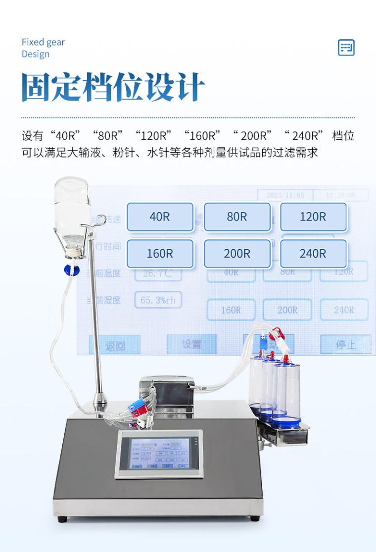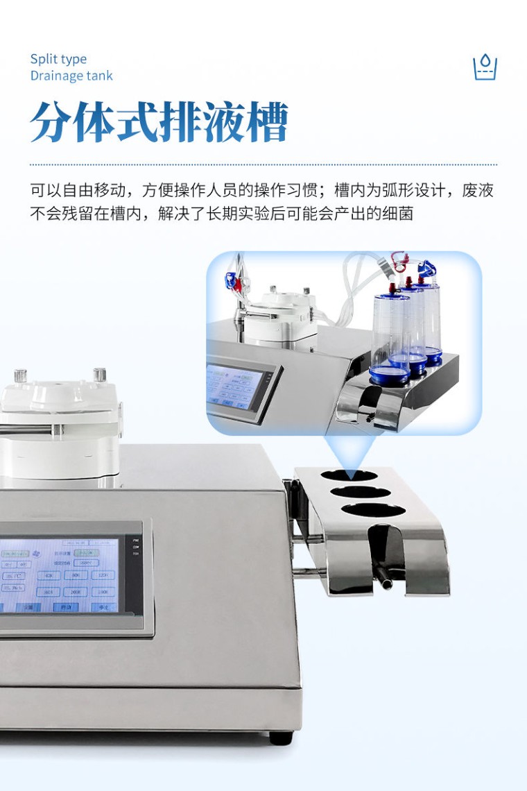 无菌集菌仪是一次性使用全封闭集菌培养器的配套使用设施。一体化不锈钢机壳设计:全部采用L304卫生级不锈钢,解决了无菌室. 微生物室高洁净仪器的要求。提高仪器的使用寿命,降低因传统集菌仪表面生锈问题造成的维修、更换等产生的成本。避免了因为化学物质对表面的腐蚀,机壳表面设计不留任何死角。通过集菌仪定向蠕动加压原理,使供试品中微生物截留在滤器中的微孔滤膜(0.22µm*47mm或0.45µm*47mm上,通过冲洗滤膜除去抑菌成分,然后把所需的培养基通过进样管道直接引入全封闭过滤集菌培养器中,放置在培养箱内进行无菌培养。 适用范围: 1、制药行业:纯化水、注射用水、无菌制剂(大输液、小针剂、粉剂、生物制品、血液制品、眼用制剂、保养液等)的无菌检查和微生物限度检查; 2、医疗器械行业:纯化水、注射用水、注射器、输液器、输血器、静脉导管等的无菌检查和微生物限度检查; 3、食品、饮料行业; 4、环保行业等。 主要特征: 1、新型泵头:过滤更顺畅,更均匀,更安全。 2、固定档位设计:设有“40R”“ 60 R”“ 160R”“ 240R” 四大档 位,可以满足大输液、粉针、水针等各种剂量供试品的过滤需求。 3、分体式的排液槽设计:可以自由移动,方便操作人员的操作习惯。槽内为弧形设计,废液不会残留在槽内,解决了长期实验后可能会产出的细菌。 4、瓶形支架设计:解决了传统的大瓶支架、小瓶支架更换带来的麻烦 和操作过程中供试品掉下来的风险。瓶形支架将供试品牢牢固定在支架上,即安全,又美观。 5、智能集菌仪圆形卡口设计:传统式直角卡口在装软管的时候都是很费劲的,有时候还会把管子卡破,造成了经济上的损失,现在圆形卡口,可以轻轻一卡,软管就可以进去,非常方便。 6、一体化开关设计:避免在机壳上开过多的孔,使机壳的清洁度更高,更人性化。 7、扳手根据人体力学设计而成,可以轻松将皮管卡牢。 8、增设脚踏开关,更便于实验操作。 技术参数: 操作控制方式:PLC程序控制,4.3寸触摸屏操作,带温湿度显示 泵头:高精度专用不锈钢泵头 电 源 :220/50Hz 转 率 :120W 转 数 :0-300prm 机壳材料:304镜面不锈钢材料 外形尺寸:470*290*145mm 悬架高度:350mm 包装尺寸:480*390*410mm 毛重:15kg