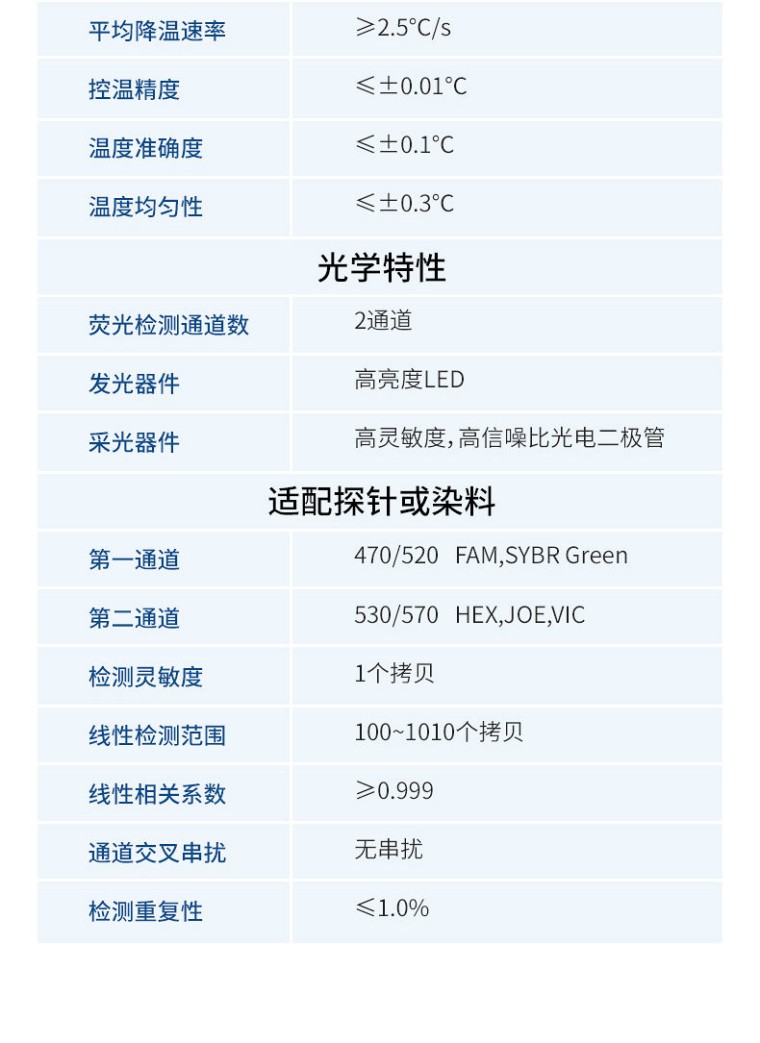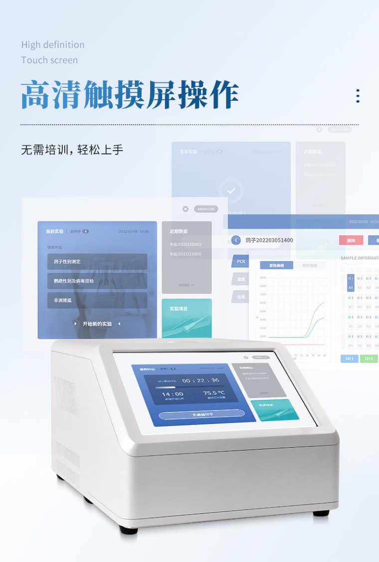 概述: 检测鹦鹉的性别有多种原因,常见的一些如:社交和防止侵害、繁殖计划、行为和训练、避免繁殖不适、医疗保健、社交群体中的平衡等等,主要是为了更好地管理和照顾这些宠物鸟类。 总之,鹦鹉性别的检测有助于饲养者更好地满足这些宠物的需求,提供适当的环境和关爱。无论出于繁殖、社交还是健康等原因,确保正确知道鹦鹉的性别对于鹦鹉的舒适和饲养者的满意度都非常重要。 DNA检测: 这是最常用的鹦鹉性别检测方法,基于分析鹦鹉的DNA来确定其性别。这种方法的准确性非常高,适用于各个年龄段的鹦鹉。DNA样本通常是从鹦鹉的羽毛或趾甲中提取,然后进行基因分析。通过检测性染色体或特定的基因标记,可以确定鹦鹉是雄性还是雌性。 检测品种: 虎皮鹦鹉、玄凤鹦鹉、牡丹鹦鹉等 基本结构: 鹦鹉DNA鉴定仪是实时检测反应的仪器,主要由基因扩增热循环系统、荧光实时检测系统、微电路控制系统、计算机及应用软件组成。其中两个核心功能模块:热循环系统和荧光实时检测系统。其中基因扩增热循环系统工作原理与传统基因扩增仪工作原理基本相同,采用半导体加热制冷工作方式完成热循环过程。荧光检测系统主要有由荧光激发部件、光信号传输部件、荧光检测部件、控制系统组成。 设备参数: 外形尺寸:235mm*385mm*175mm(宽*深*高) 重量:5.6kg 电气参数:~220V/50Hz,255W 数据接口:USB 2.0 *2(右侧两个) 环境参数: 运行条件:温度:10-30℃,湿度:20%~80% 运输及贮存条件:温度:-20~55℃,湿度:20%~80% 海拔高度:<2500米 噪声等级:A计权,<60dB 样本参数: 样本容量:16*0.2mL 试管类型:单管,八联排,16孔试管 样本容积:15-100uL 温度特性: 加热/冷却方式:半导体加热/制冷 温度范围:4℃-99℃ 最大升温速率:≥3.5℃/s 平均升温速率:≥2.5℃/s 最大降温速率:≥3.5℃/s 平均降温速率:≥2.5℃/s 控温精度:≤±0.01℃ 温度准确度:≤±0.1℃ 温度均匀性:≤±0.3℃ 光学特性: 荧光检测通道数:2通道 发光器件:高亮度LED 采光器件:高灵敏度,高信噪比光电二极管 适配探针或染料: **通道:470/520 FAM,SYBR Green **通道:530/570 HEX,JOE,VIC 检测灵敏度:1个拷贝 线性检测范围:100~1010个拷贝 线性相关系数:≥0.999 通道交叉串扰:无串扰 检测重复性:≤1.0%