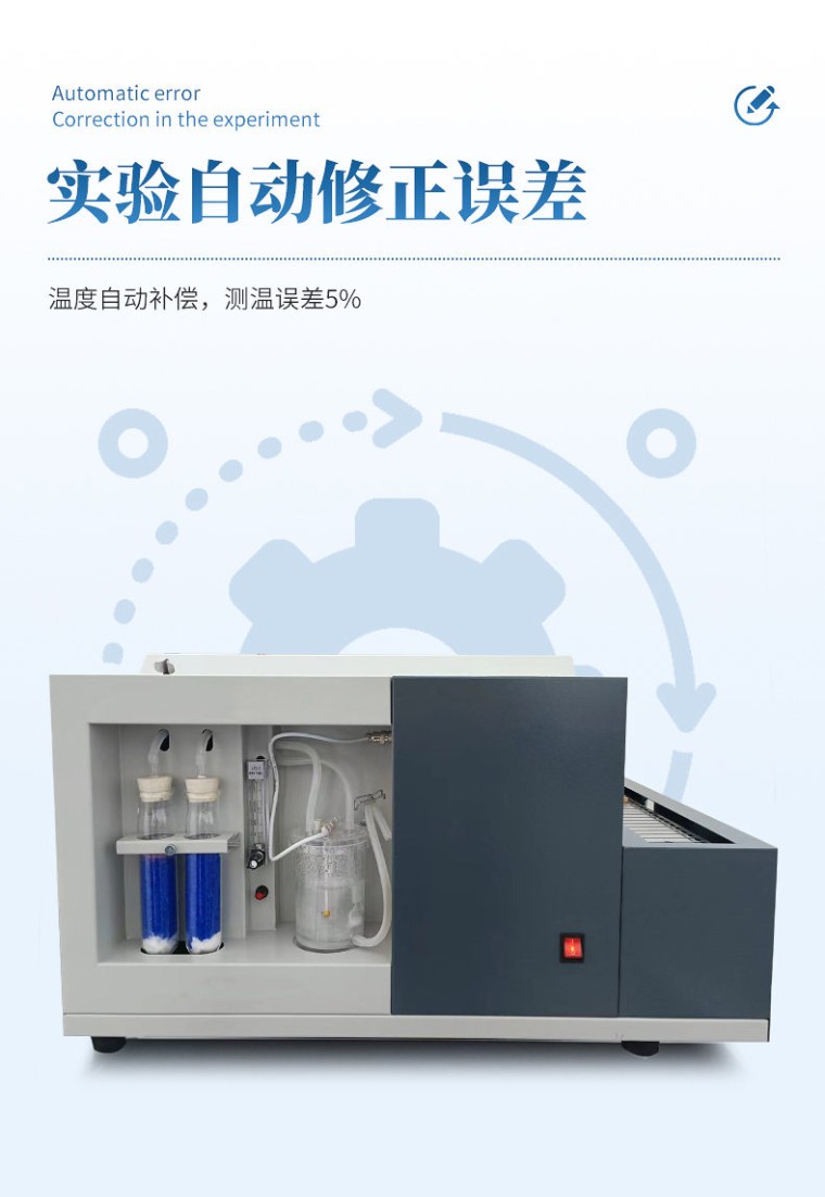 触屏单样品测硫仪是我公司自主研制的带新一代全自动仪器。依据库仑滴定法的原理(参见GB/T 214—2007)制成的。由单片机系统进行高温炉的温度控制和库仑滴定结果的测量,由7寸液晶显示屏显示,并向单片机系统发送相应控制命令,由单片机系统独立完成相应工作。 一、系统功能概述 1、系统主要用于测量煤、活性炭、焦炭、石油等可燃物质的硫的含量。 2、整个测试过程由微机控制自动完成。 3、误差可以通过实验自动修正。 4、测试结果**保存,可查阅、打印。 5、温度自动补偿,测温误差5%。 6、具有硅碳管开机自动保护和过流保护等功能。 7、 本系统将高温炉、磁力搅拌器、空气净化装置、电解池、自动送样机构、单片机控制线路合理地放置在同一机箱内,使整机系统美观、体积小、系统的放置与连接方便、系统的操作与日常维护简单等特点。 8、电源:AC(220±22)V,50HZ. 功率:≤3KW。 二、主要技术指标 1、硫的测量范围:0—40%. 2、单个试样燃烧分析时间:约5--7分钟,其中在500℃处停留45秒,1050℃处停留4分45秒。 3、控温:精度±5℃。测温:精度0.5级;加热体为硅碳管,高温区长度≥90毫米,温度为1050℃±5℃(根据需要可调节温度) 4、精密度:如下表规定: