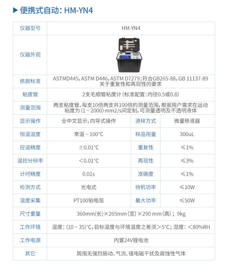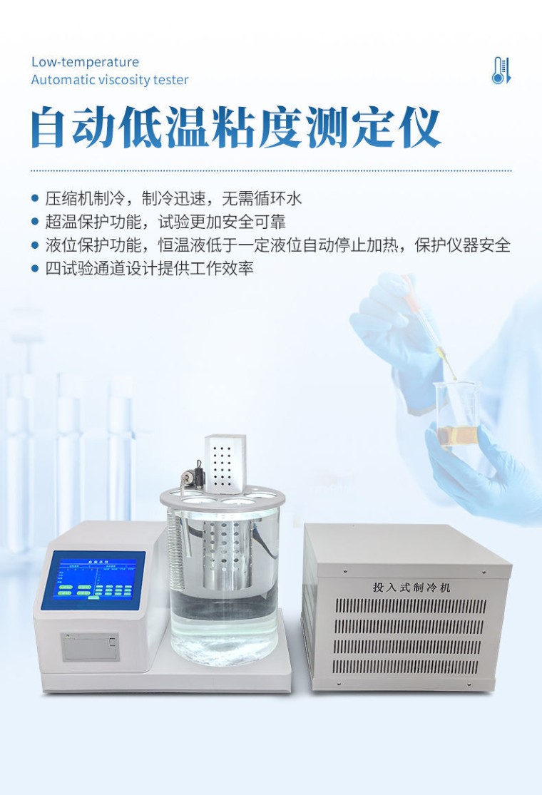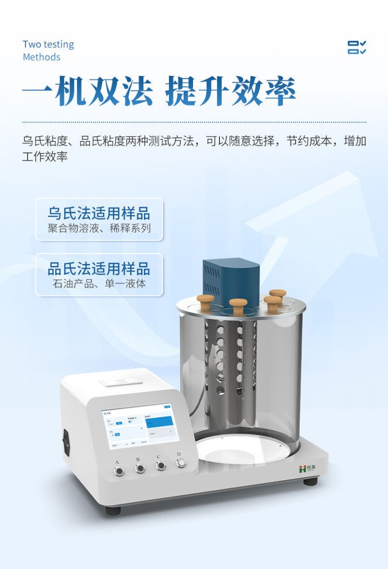 乌氏粘度测定仪(Ubbelohde viscometer) 主要应用领域和样品类型: 1、 化工行业 溶剂:有机溶剂、无机溶剂等。聚合物溶液:聚乙烯醇、聚丙烯酰胺等。 2、 制药行业 药物制剂:药膏、口服液、注射液等。 3、 食品行业 食品添加剂:增稠剂、稳定剂等。饮料:果汁、碳酸饮料、乳制品等。糖浆:玉米糖浆、果葡糖浆等。 4、 印刷行业 油墨:水性油墨、溶剂型油墨等。胶水:印刷胶水、粘合剂等。 5、 纺织行业 染料:纺织染料、印花浆料等。 6、 化妆品行业 护肤品:面霜、乳液、精华液等。洗护用品:洗发水、沐浴露等。 7、 科研机构 基础研究:液体物理性质的研究。新材料:新型聚合物、纳米材料等。 产品主要特点 1.7寸高清触摸屏操作,方便操作,四试验通道设计提供工作效率 2 采用高精度控温技术,控温精度达到正负0.01摄氏度 3 全部高性能MCU控制、稳定可靠性极高 4 全自动储存50个检测结果,并随时查看 5 可长期连续工作,故障率极低 6 带超温保护功能,试验更加安全可靠 7 带液位保护功能,恒温液低于一定液位自动停止加热,保护仪器安全 8 内置热敏打印机,自动打印试验结果 9 压缩机制冷,制冷迅速,无需循环水 技术参数 温度范围:5℃~+100℃ 精度±0.01℃。 温度传感器:德国A级Pt 100不锈钢探头, 内置温度校正,检测结果可靠。 加热方式:电加热单元,最大加热功率1000 W。 制冷方式:压缩机制冷 。 显示:7寸工业彩色触摸屏。 温度校正:0-20随意调整。 数据存储:50组测试结果。 电源:AC220V 50Hz 最大功率1500 W。 使用环境温度:10~35℃ 存储环境温度:0~50